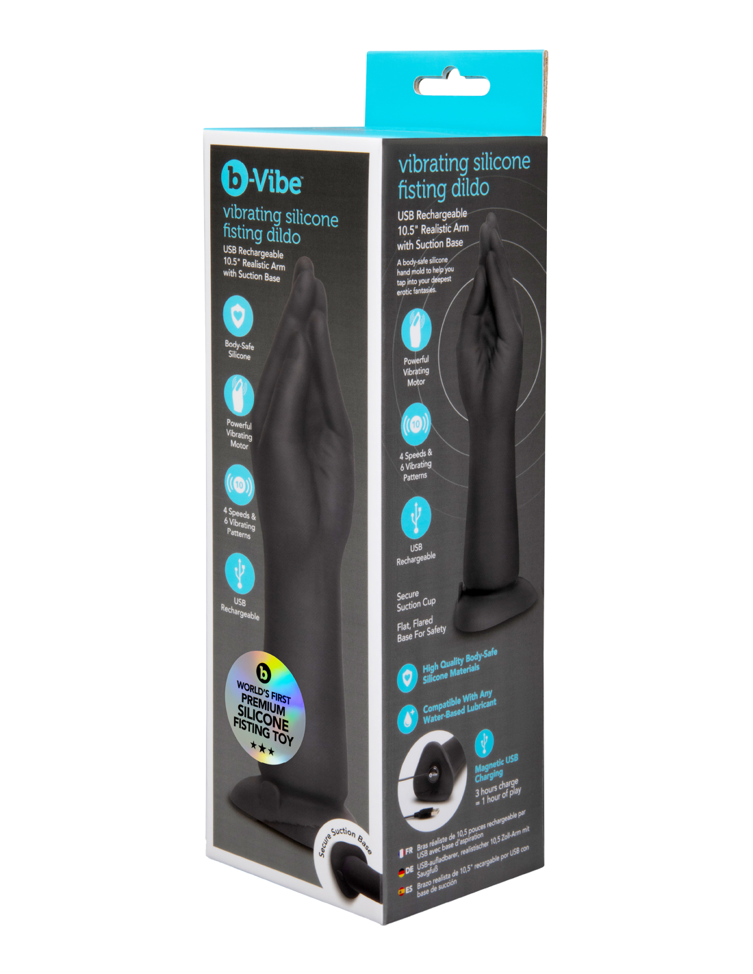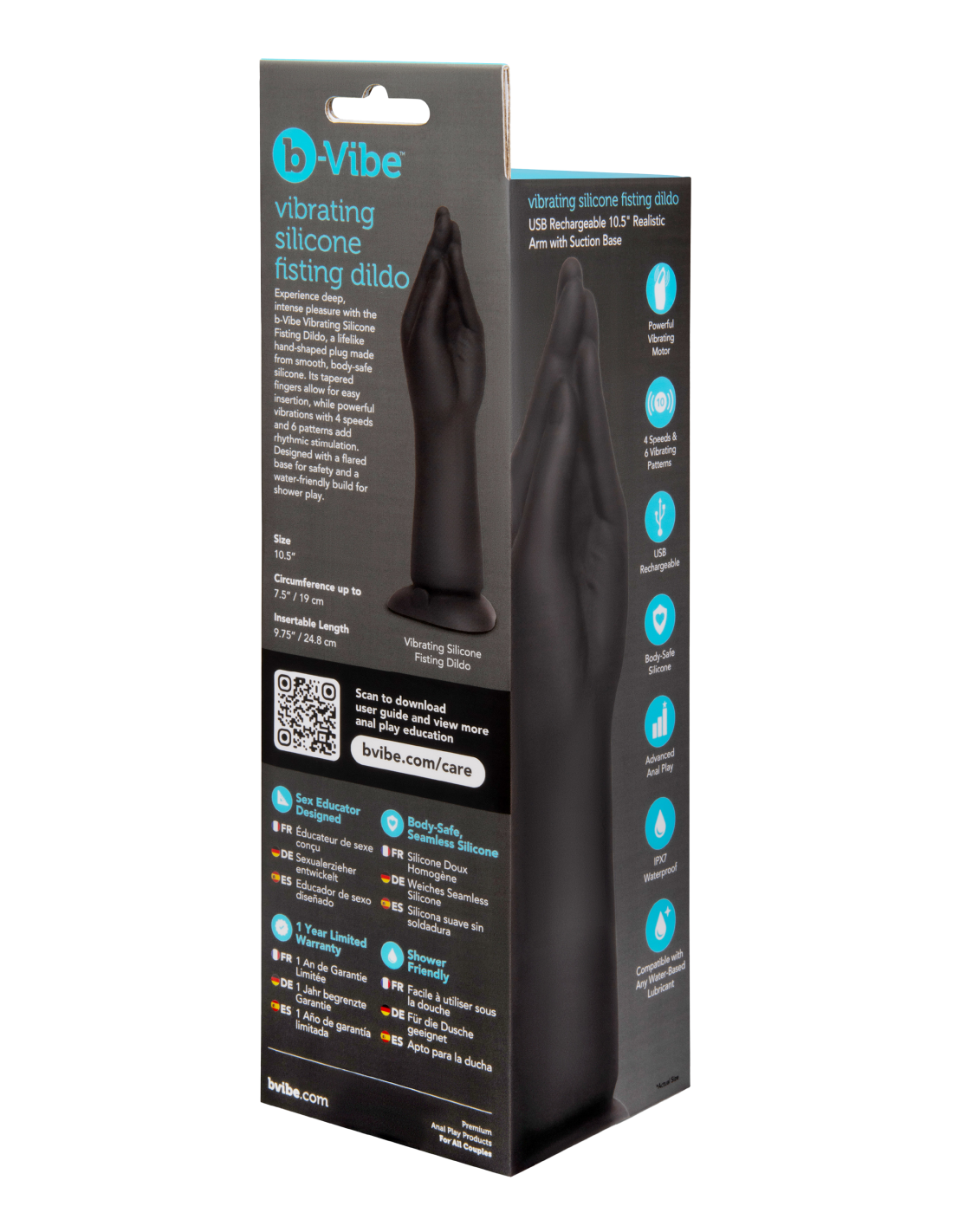 Experience deep, intense pleasure with the b-Vibe Vibrating Silicone Fisting Dildo, a lifelike hand-shaped plug made from smooth, body-safe silicone. Its tapered fingers allow for easy insertion, while powerful vibrations with 4 speeds and 6 patterns add rhythmic stimulation. Designed with a flared base for safety and a water-friendly build for shower play.