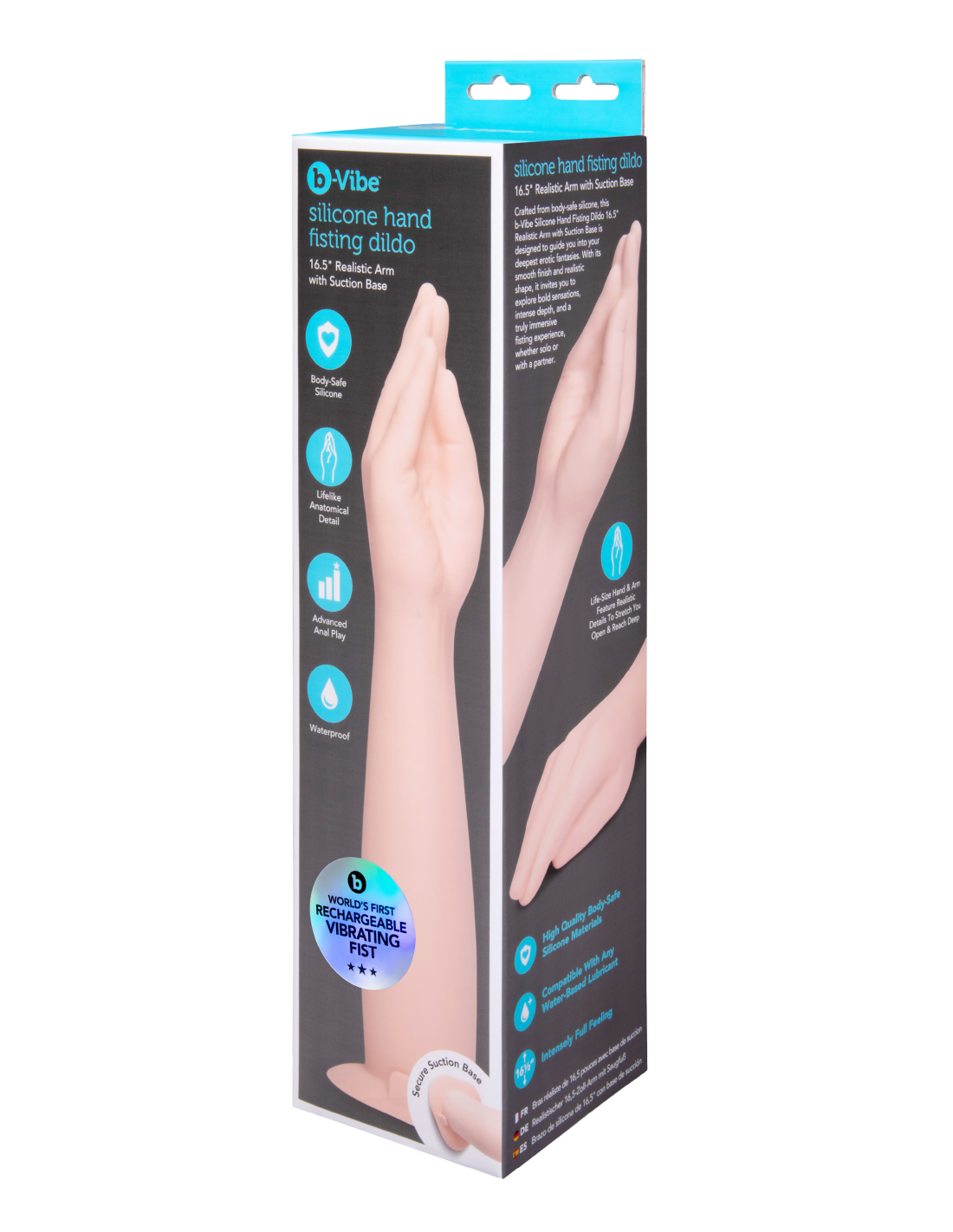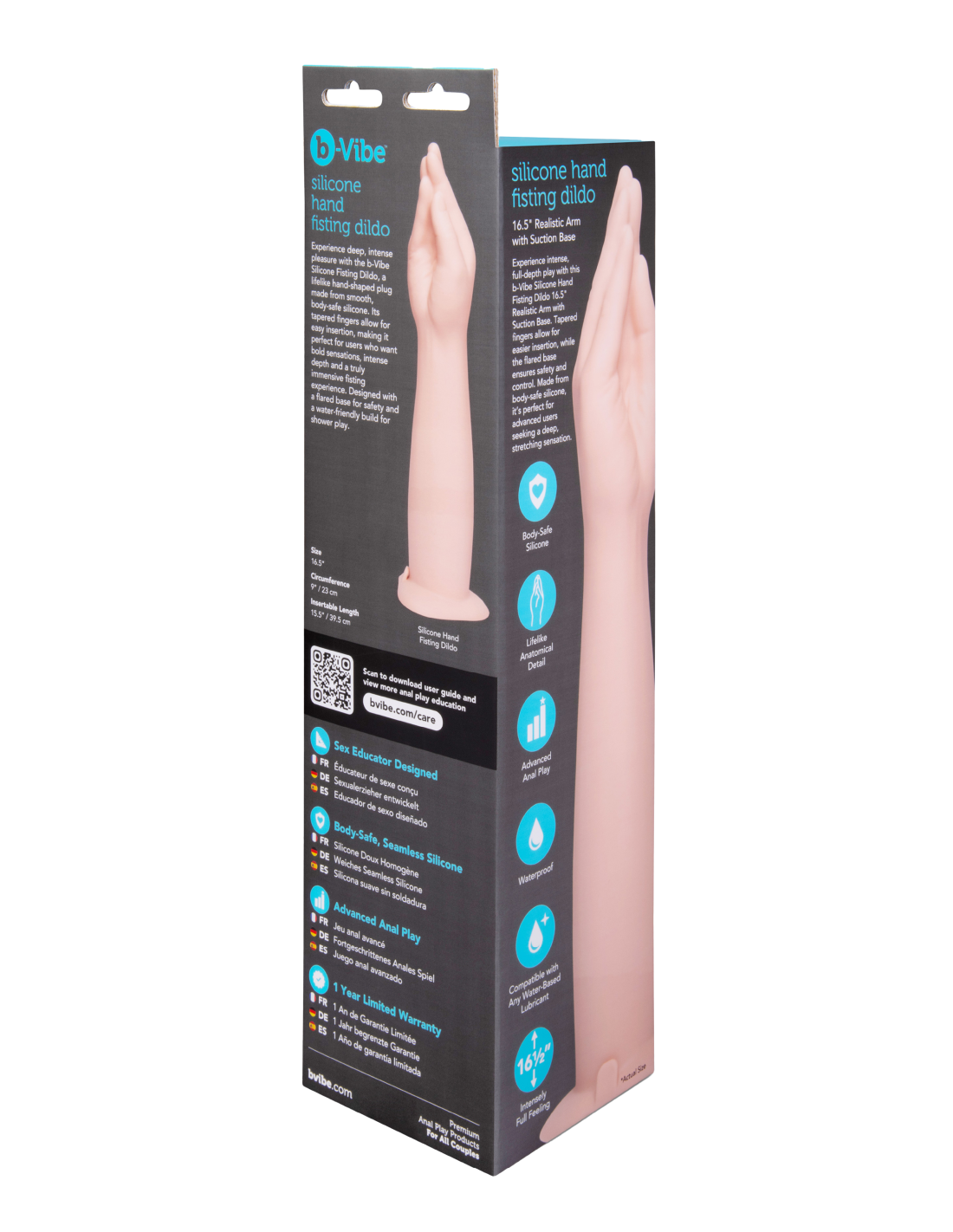 Experience deep, intense pleasure with the b-Vibe Silicone Hand Fisting Dildo, a lifelike hand-shaped plug made from smooth, body-safe silicone. Its tapered fingers allow for easy insertion, making it perfect for users who want bold sensations, intense depth and a truly immersive fisting experience. Designed with a flared base for safety and a water-friendly build for shower play.