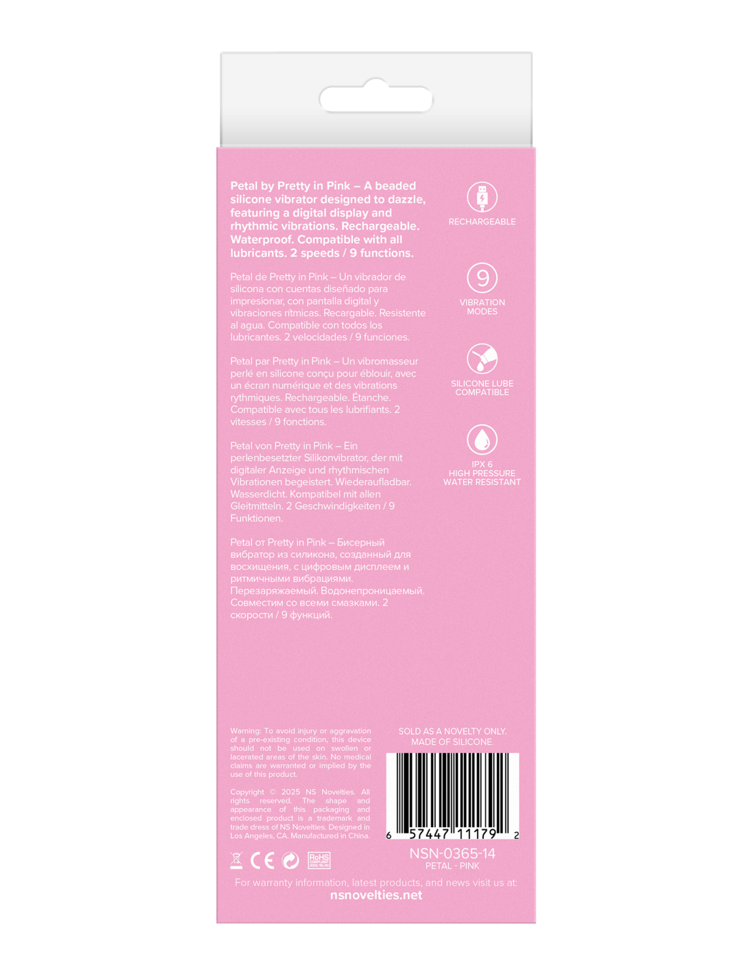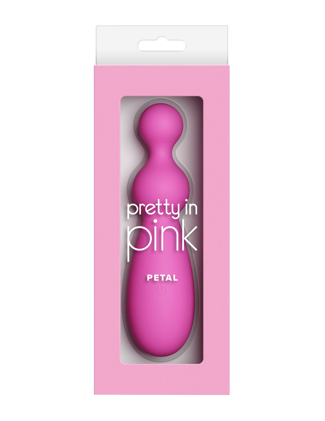 Petal by Pretty in Pink - a beaded silicone vibrator designed to dazzle, featuring a digital display and rhythmic vibrations. Waterproof. Compatible with all lubricants. 2 speeds / 9 functions.