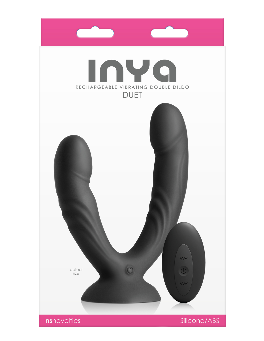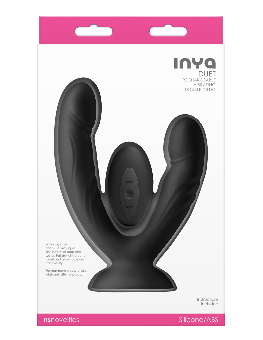 INYA Duet is a vibrating double dildo designed for solo indulgence or shared intimacy. Made of smooth, body-safe silicone, Duet features a strong suction cup base and a splash-resistant remote control for hands-free pleasure. Rechargeable. Water resistant. Compatible with all lubricants. 3 speeds / 7 functions. CR2032 (1) for remote included.