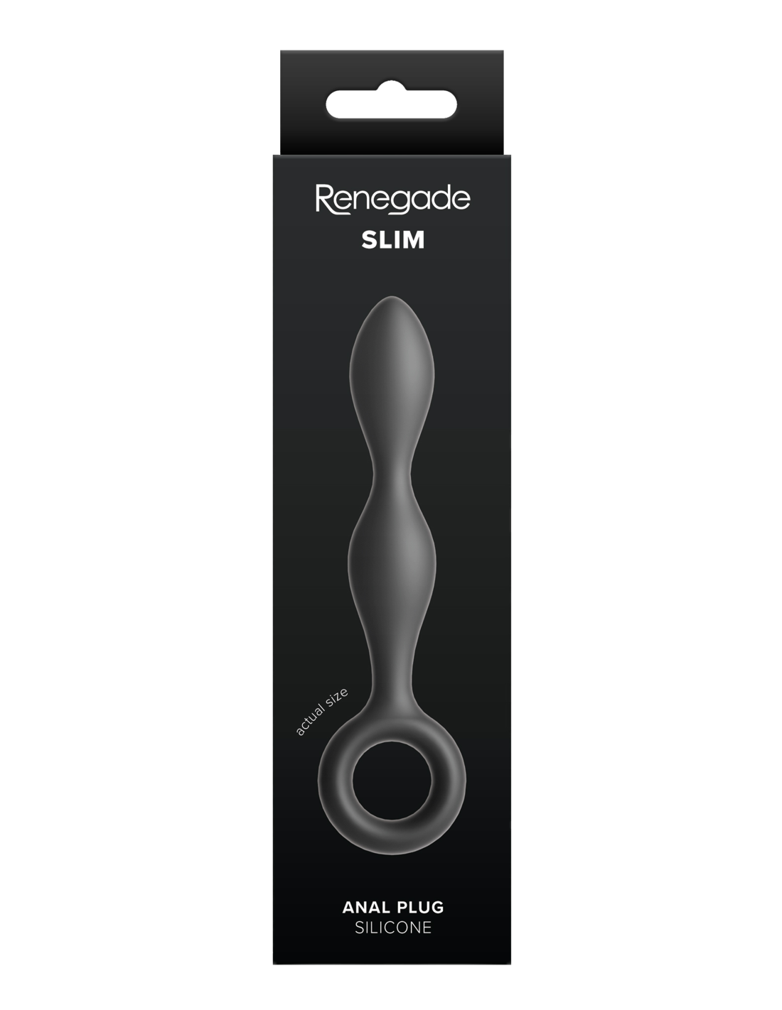 Renegade's Slim is a tapered and slim anal plug made of plush silicone with finger ring for comfort and control. Perfect for beginners. Compatible with all lubricants.
