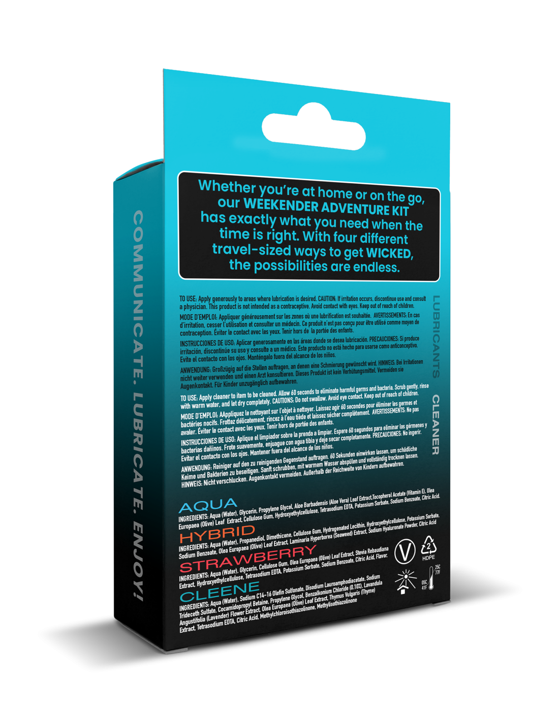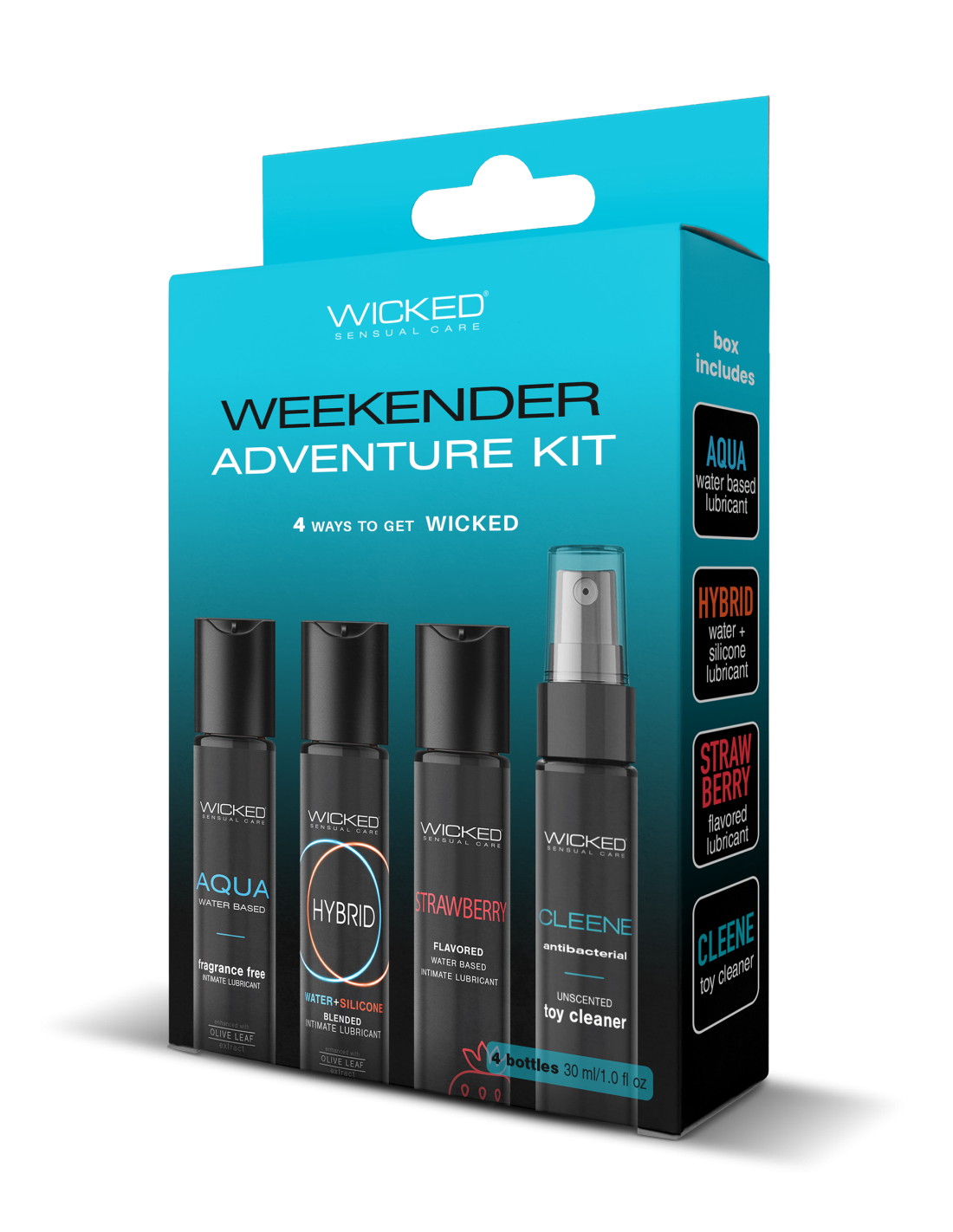 Whether you're at home or on the go, the Wicked Weekender Kit has exactly what you need when the time is right. With 4 different travel-sized ways to get WICKED, the possibilities are endless.