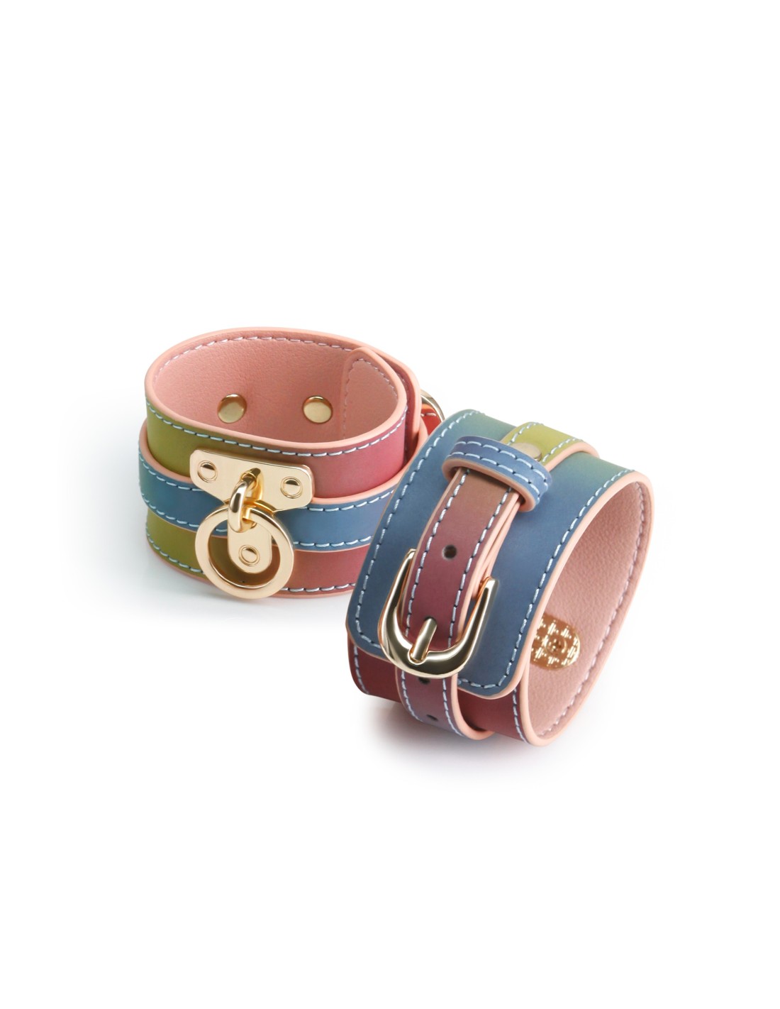 Mejore la emoción visual y agregue un toque de elegancia a su juego BDSM con estas exquisitas muñequeras de la colección Spectra Bondage. Diseñadas para aportar color, atractivo y una sensación de lujo a tus momentos íntimos.