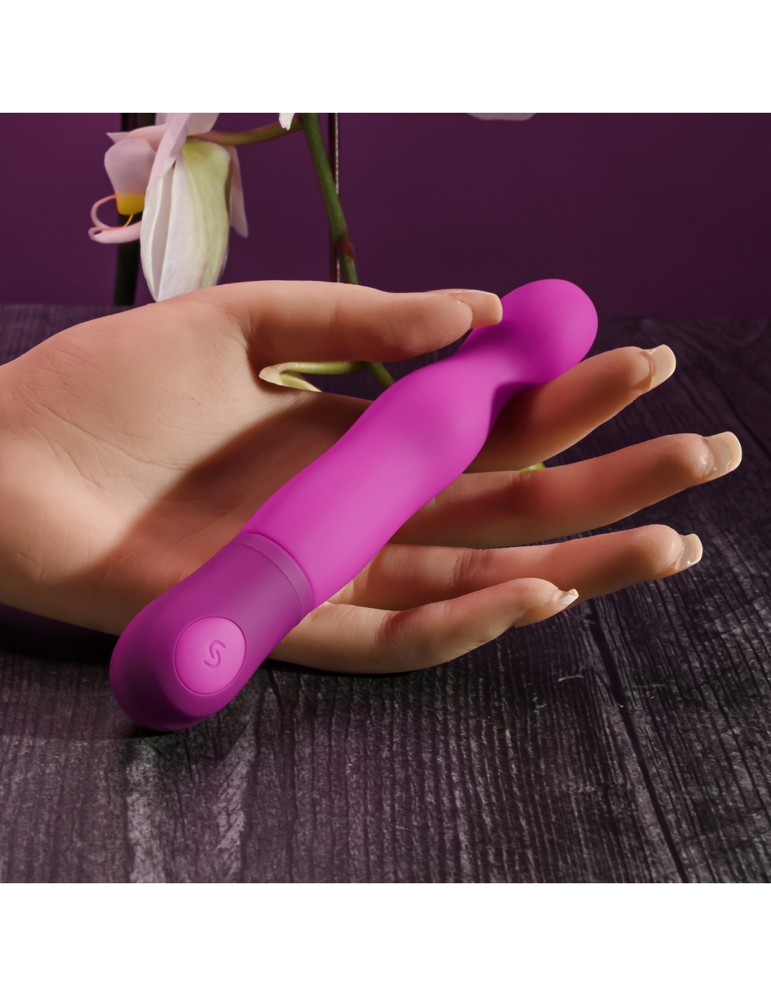 Este pequeño pero potente vibrador tiene un ángulo en la parte superior con una punta flexible y bulbosa diseñada para alcanzar el punto G con facilidad.