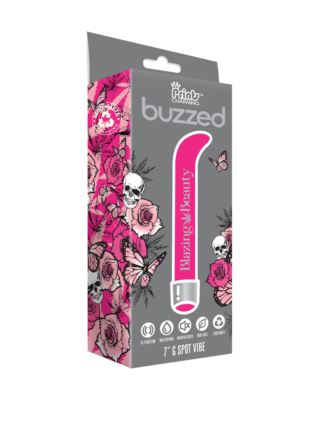 ¡Prepárate para un máximo histórico, Blazing Beauty! Regálate 10 funciones diferentes de 3 velocidades de potencia y 7 funciones de patrones para disfrutar. El vibrador Prints Charming Buzzed G-spot tiene un acabado suave y satinado y un potente motor. El diseño delgado con temática de cannabis tiene una punta curva para una estimulación específica del punto G. Este vibrador es resistente al agua y silencioso, seguro para el cuerpo y libre de ftalatos. Fácil de operar con el control del botón LED de un toque. Como beneficio adicional, se incluye una bolsa para guardar juguetes sexuales. Blazing Beauty viene en un embalaje ecológico sin residuos, ¡porque salvar el planeta es realmente excitante! Compatible con todos los lubricantes.