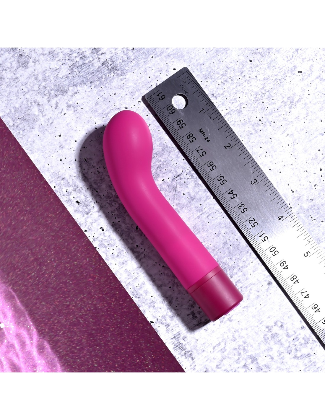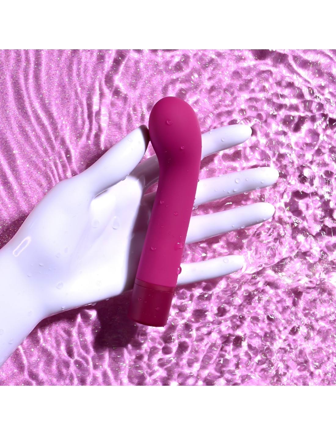Suavemente curvado con una cabeza regordeta en ángulo, este vibrador de varias velocidades es flexible para moverse con su cuerpo y alcanzar fácilmente el punto G.