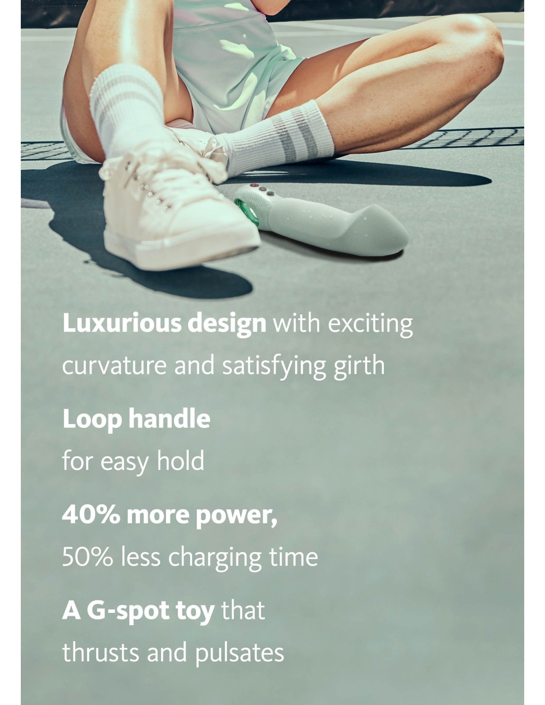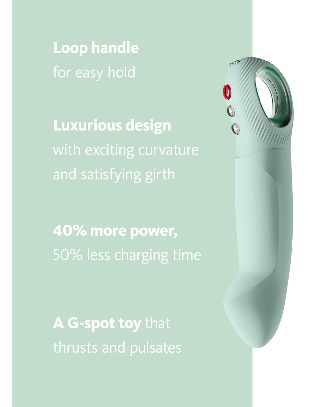 Cierre los ojos, recuéstese y disfrute del potente empuje de STRONIC G FORTE. El juguete se mueve de un lado a otro por sí solo utilizando la tecnología patentada exclusiva de FUN FACTORY. Déjate llevar por el empuje rítmico y aumenta la intensidad a tu gusto. Desde un suave masaje del punto G con manos libres hasta una potente penetración, STRONIC G FORTE lo hace todo. ¡Prepárate para clímax explosivos!