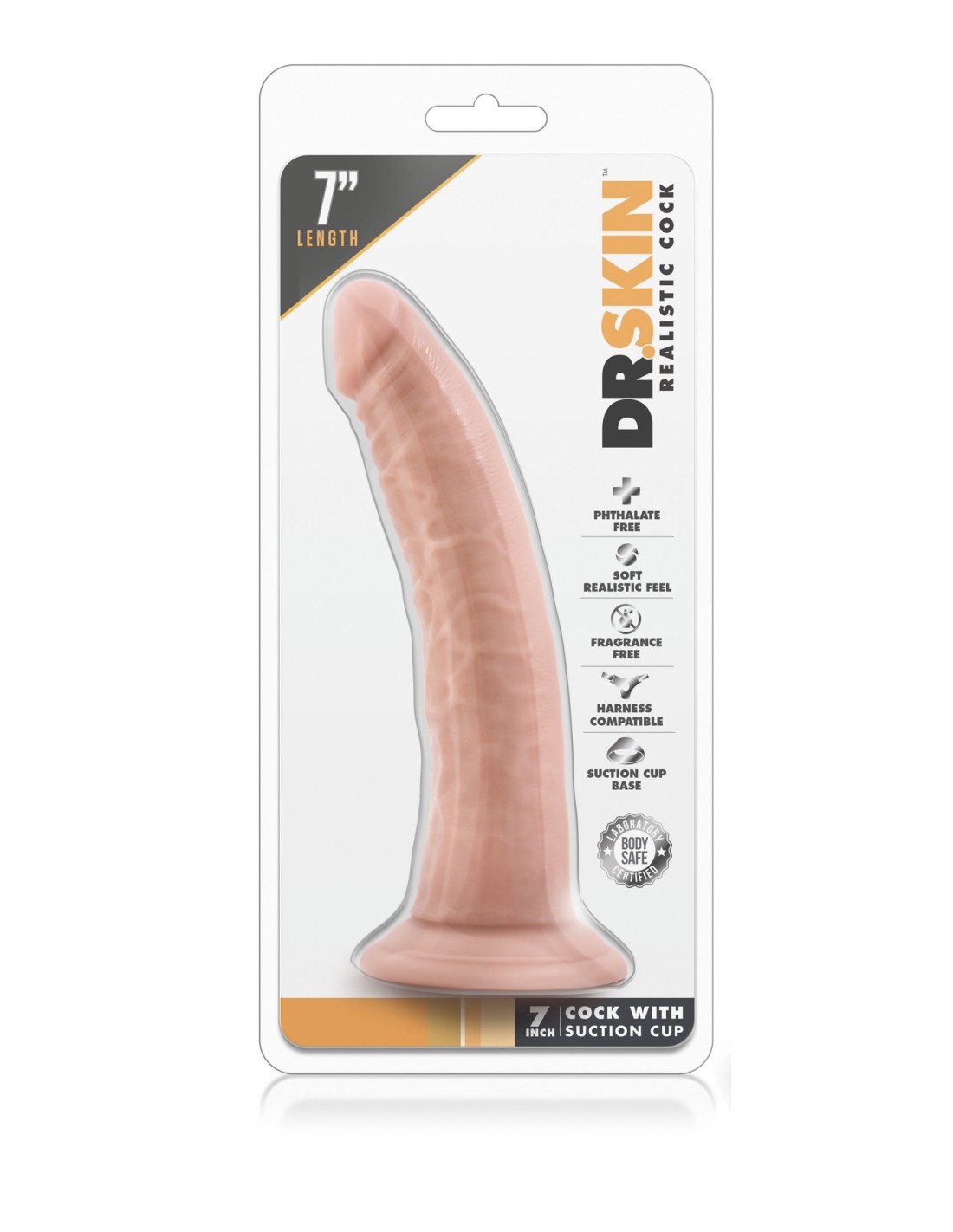 ¡El médico está dentro! El Dr. Skin Realistic Cock de 7 pulgadas es un consolador realista con una base de ventosa resistente que se sujeta a cualquier superficie plana para pasar un rato a solas. ¡O únete para divertirte con el arnés con correas! Este Dr. Skin Realistic Cock está hecho de PVC suave y seguro. No contiene ftalatos, parafinas ni látex. Para limpiar, use agua y jabón o un limpiador de juguetes y luego deje secar al aire.