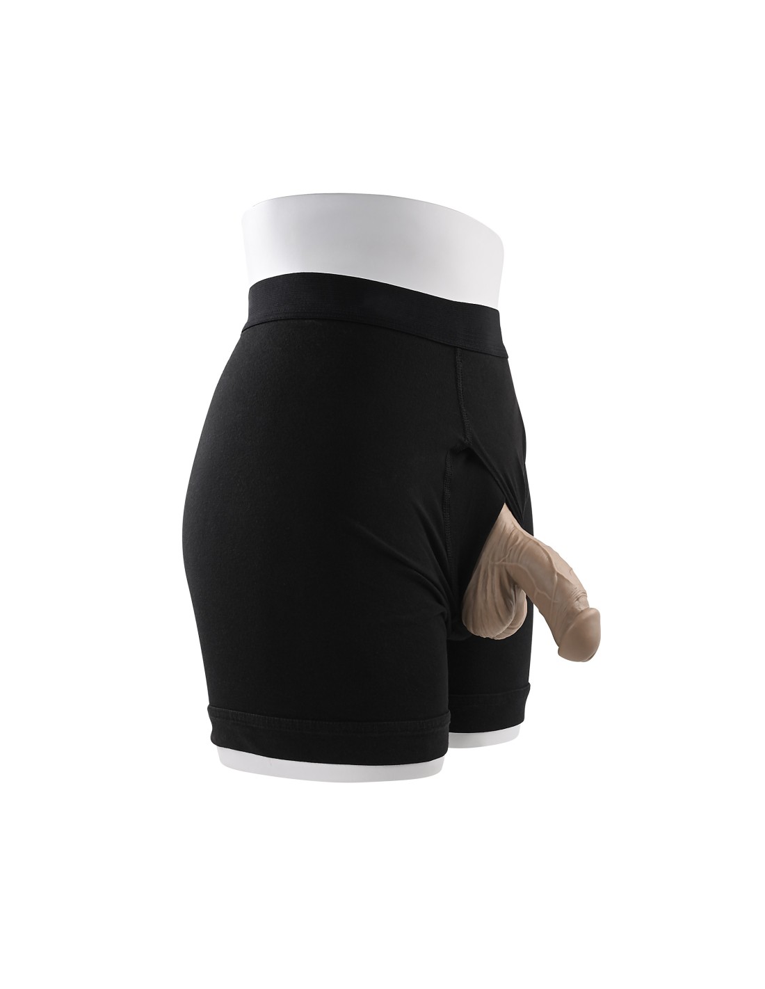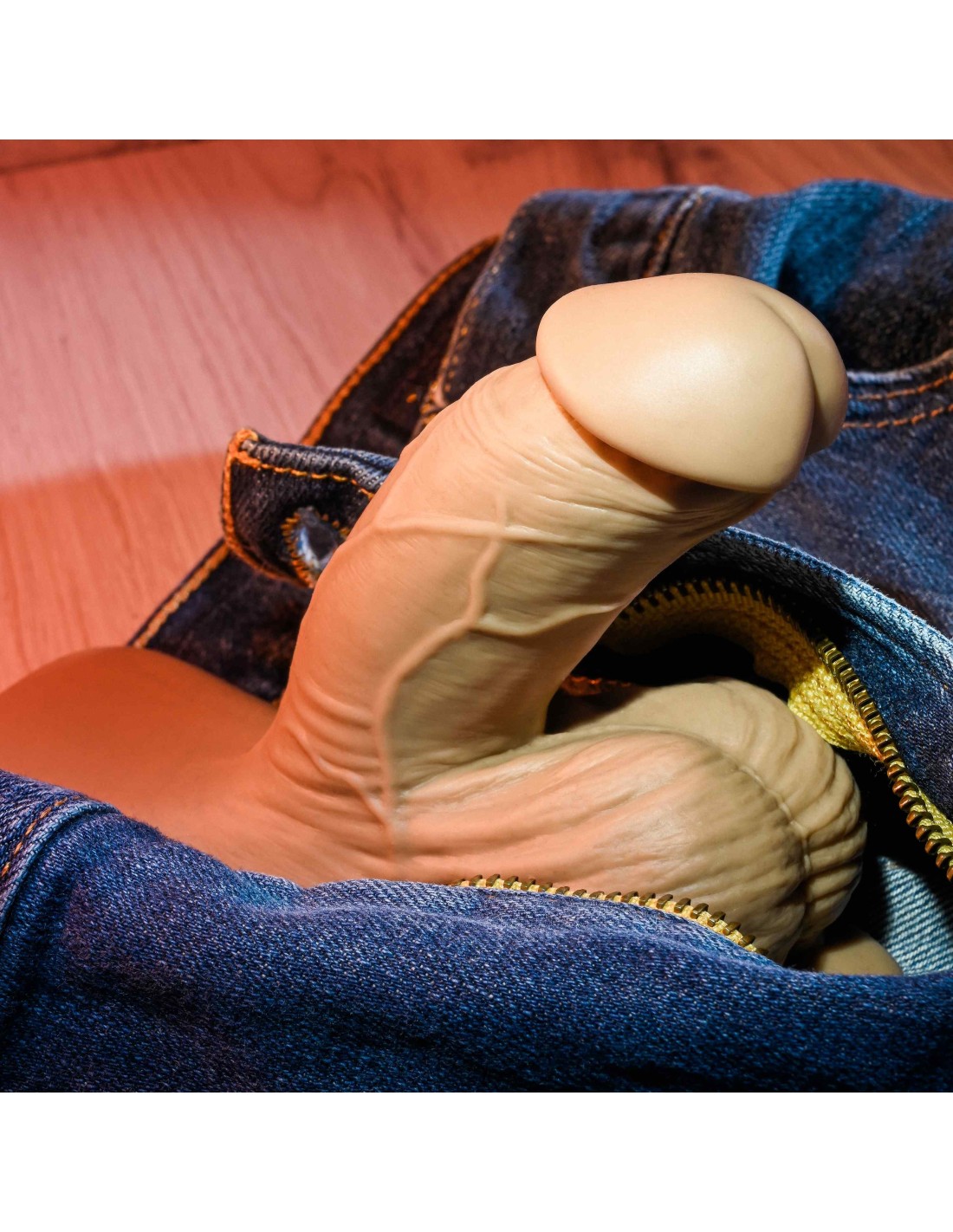 Este empaquetador de pene está bellamente elaborado en 100% silicona con una apariencia y sensación realistas. Las texturas realistas de venas y arrugas están diseñadas con extrema atención al detalle y construidas con un material blando que es súper flexible. Su peso satisfactorio cabe de forma segura en ropa interior ajustada. Resistente al agua y fácil de limpiar.
