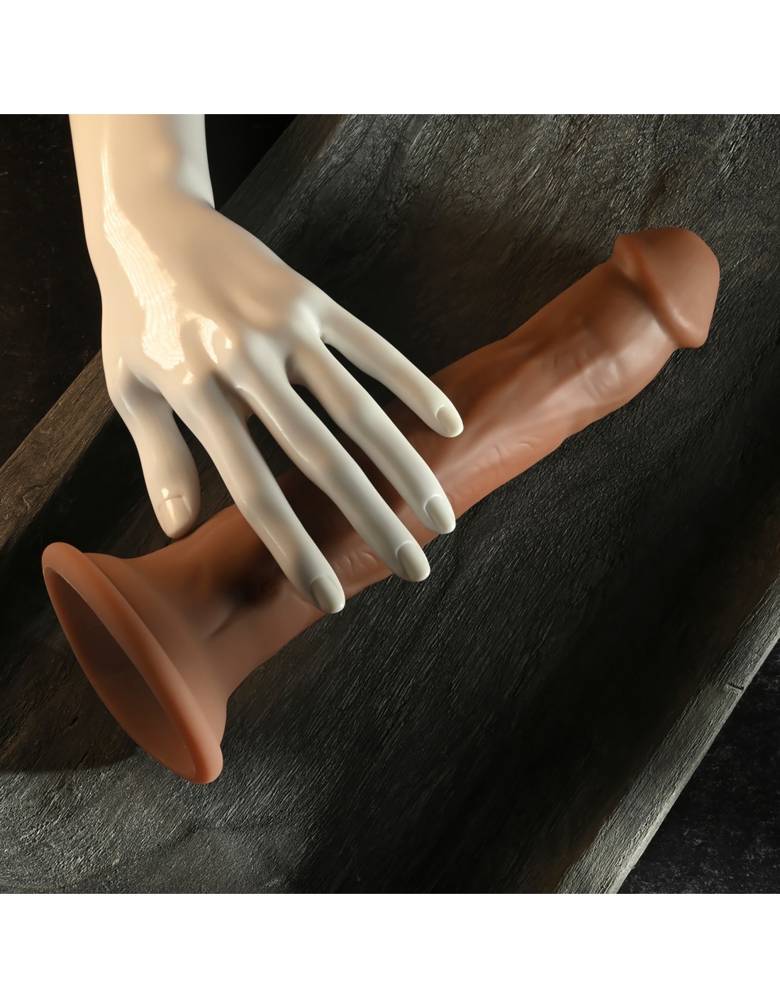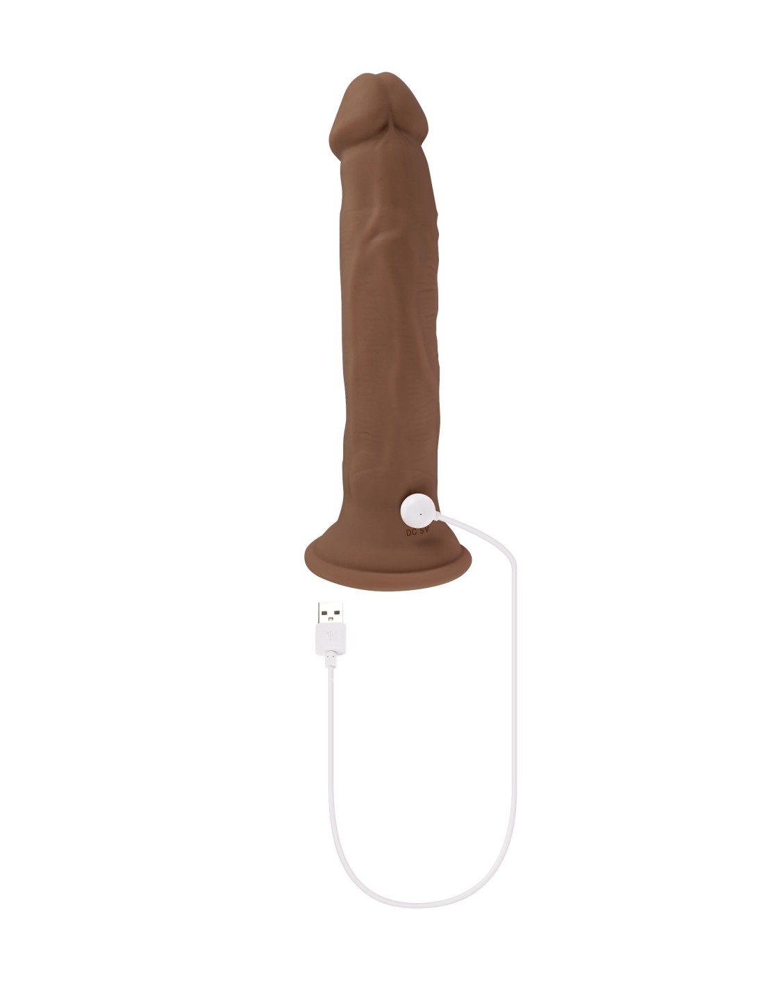 Confíe en el empuje y las fuertes vibraciones de este shaft de silicona que funciona con manos libres con un mando a distancia y una potente base de ventosa. Las texturas de venas realistas y una punta cónica con crestas en la corona están elaboradas con un material de doble capa firme pero flexible para una deliciosa sensación realista.