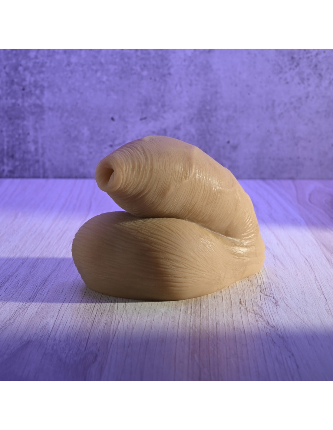 Este empacador realista presenta un pene no circuncidado realista y bolas con venas y arrugas realistas, diseñado como un peso satisfactorio para meterlo de forma segura en prendas ajustadas.