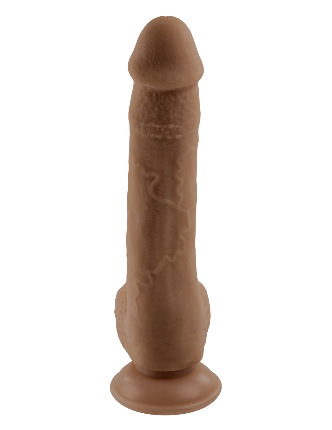 Este consolador realista posa donde lo pones con una varilla de metal flexible en su interior, y es extremadamente realista en su forma, texturas y material de doble capa que se mueve como piel real.