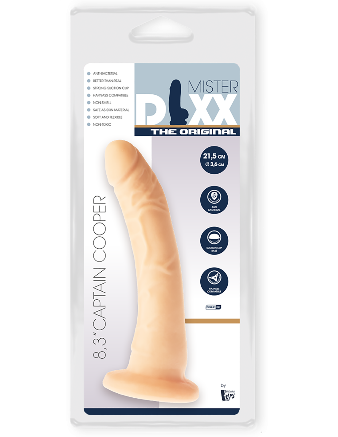 Captain Cooper de Mr Dixx - The Original collection es un consolador suave y flexible, hecho de PVC antibacteriano, inodoro y seguro para el cuerpo.