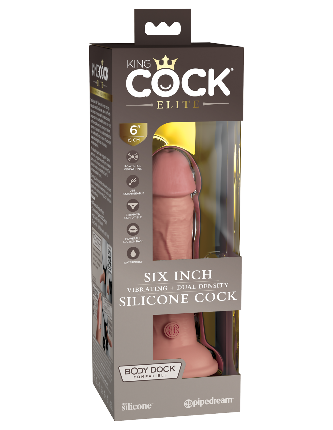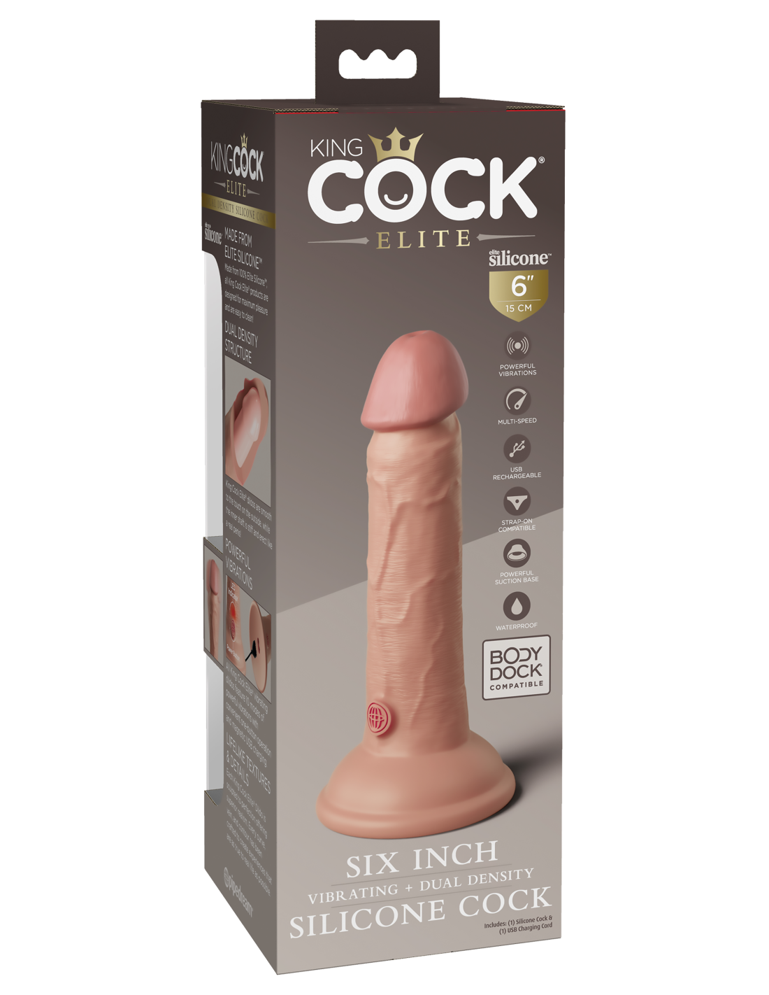 KING COCK ELITE 6 PULGADAS DE LUZ DE SILICONA VIBRATORIA DE DOBLE DENSIDAD
