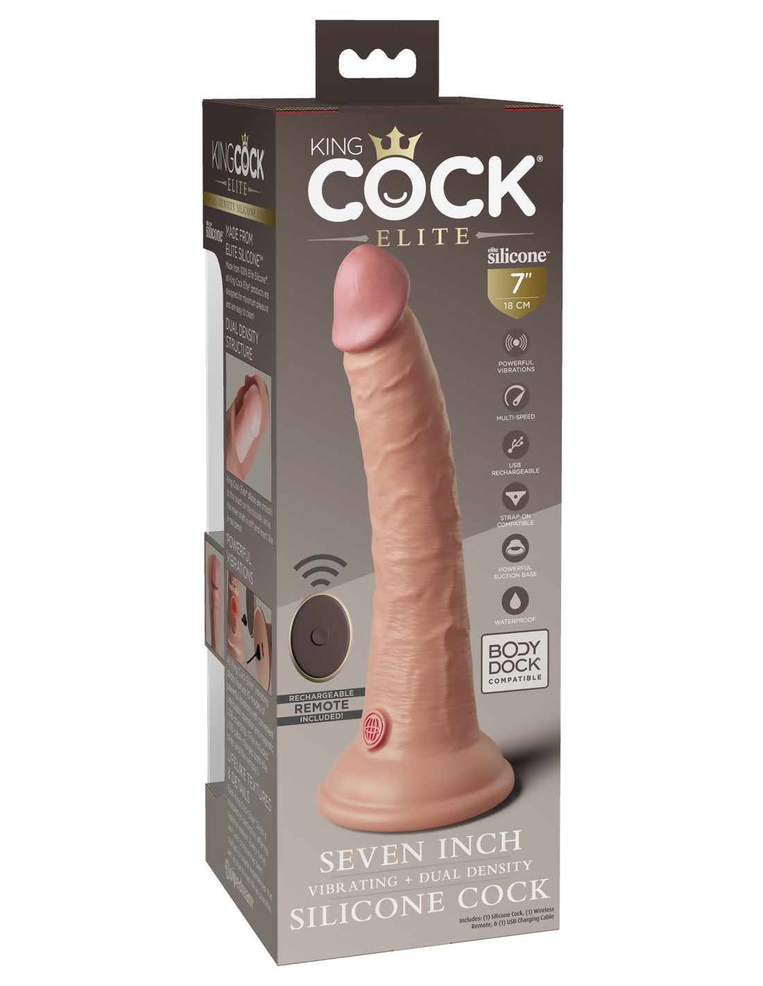 KING COCK ELITE POLLA DE SILICONA VIBRATORIA DE DOBLE DENSIDAD DE 7 PULGADAS CON LUZ REMOTA