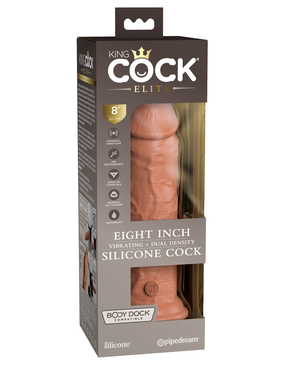 KING COCK ELITE 8 PULGADAS DE SILICONA VIBRANTE DE DOBLE DENSIDAD COCK TAN