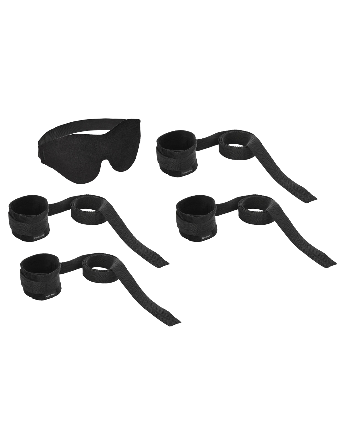 - El kit incluye: 4 ganchos y bucles, puños ajustables unidos a correas atables y una venda suave para los ojos