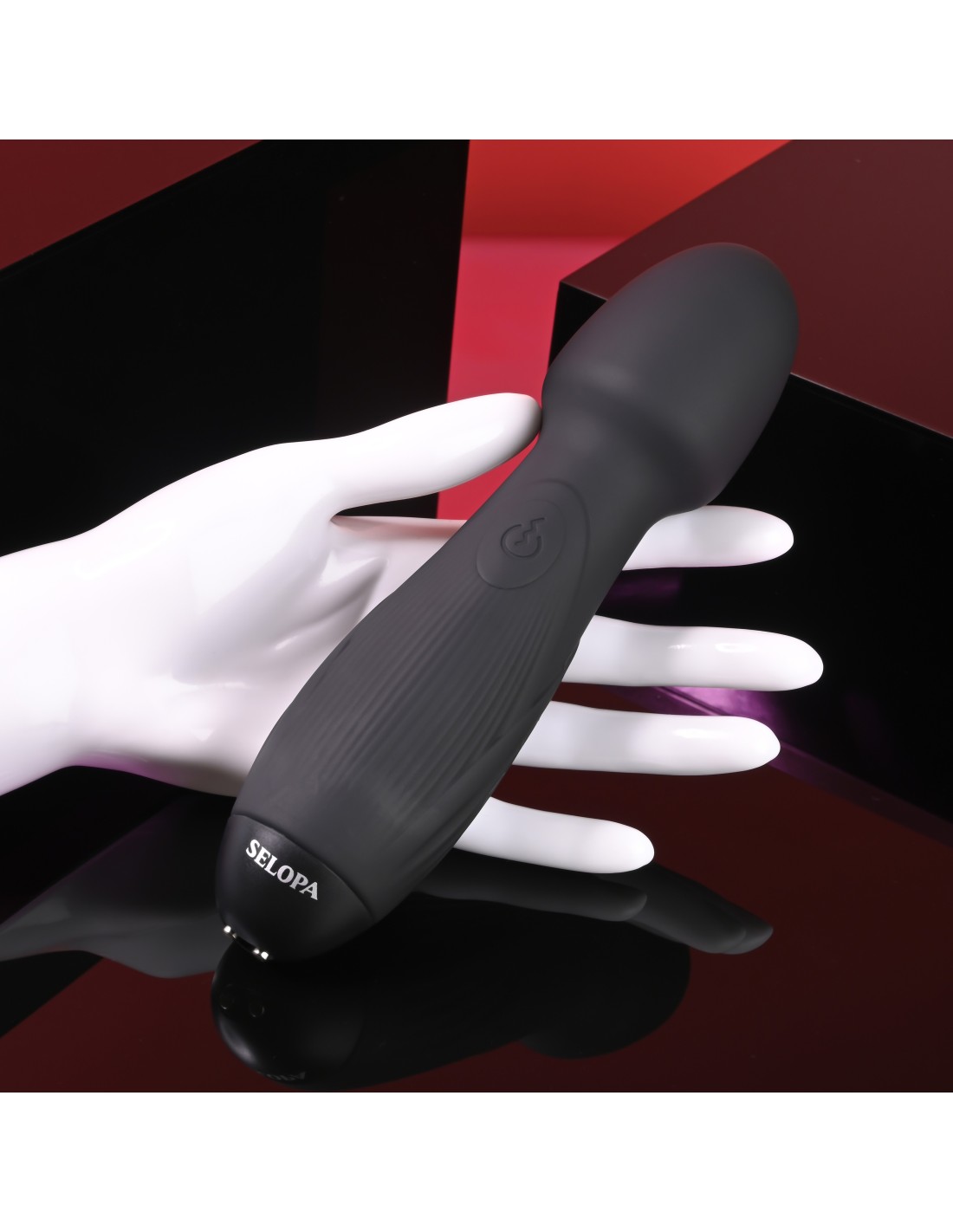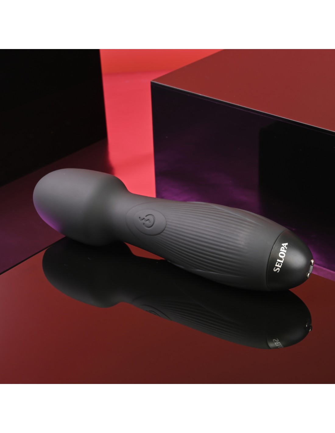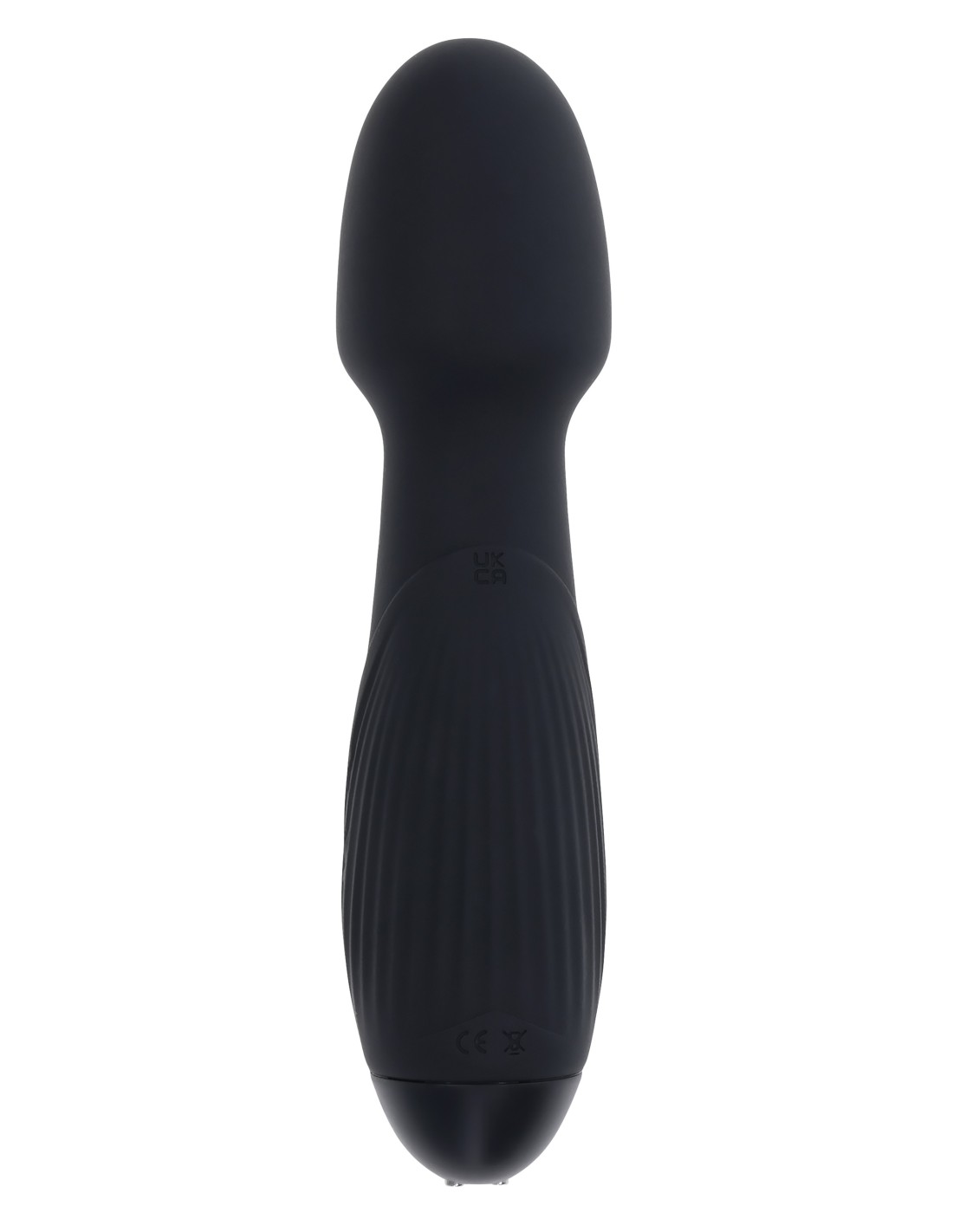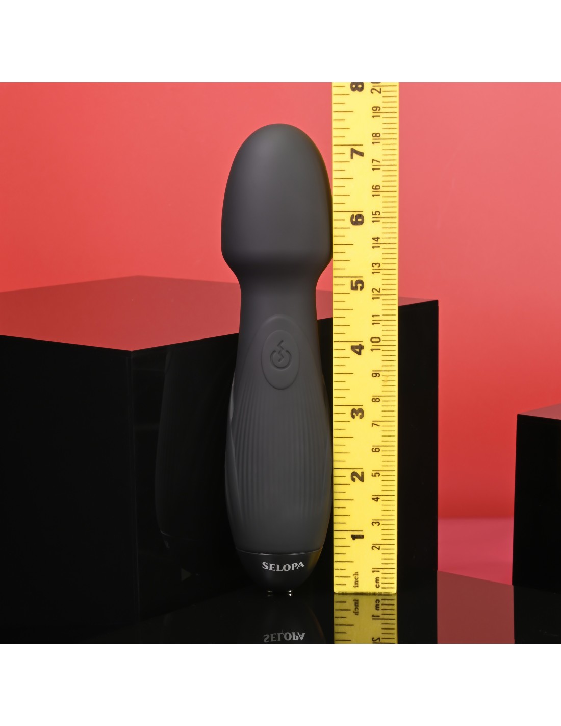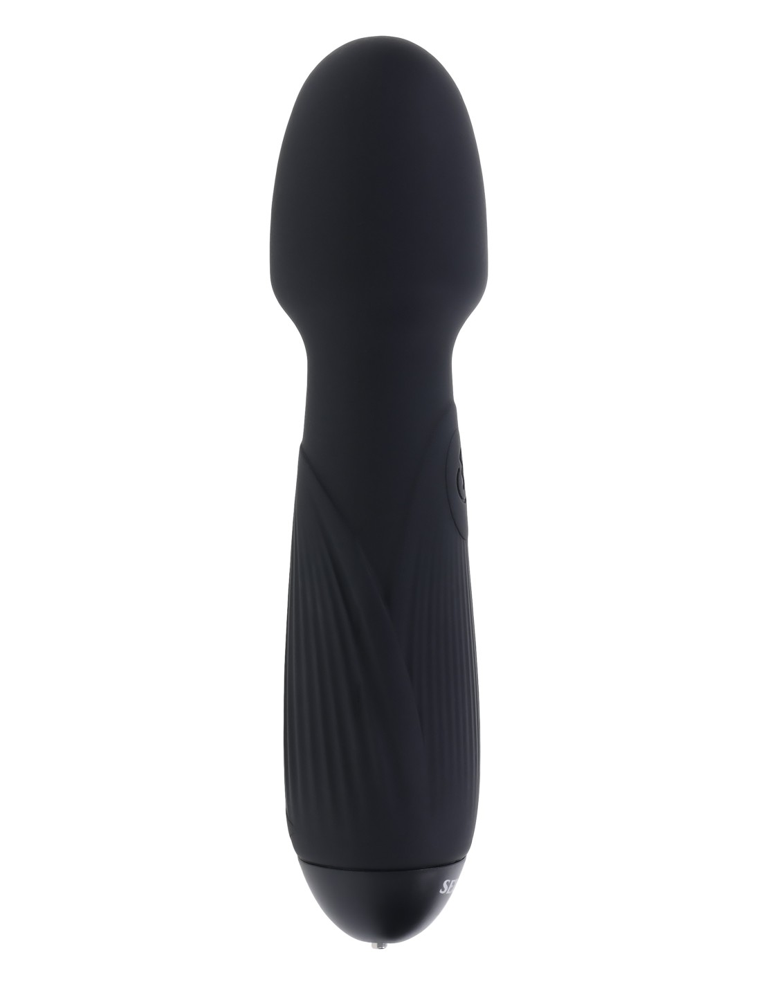 Experimente la satisfacción de una elegante varita sellada con silicona que emana poderosas vibraciones de su cabeza redondeada flexible y descansa fácilmente en su mano con un agarre sólido y texturizado.