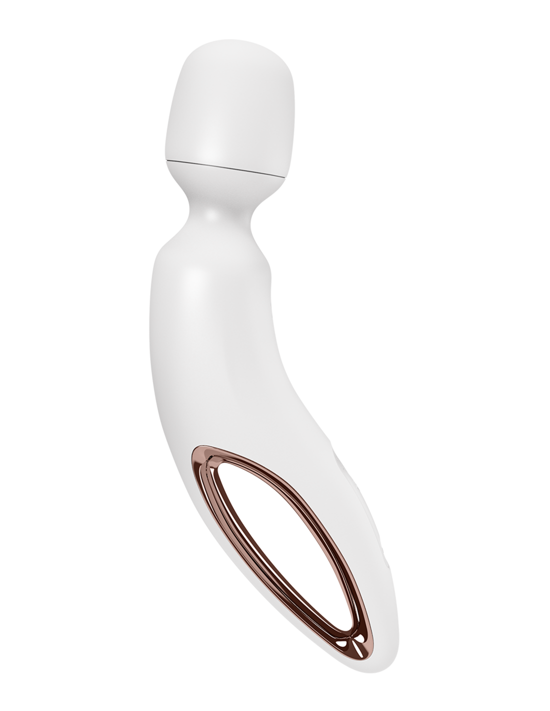 Si tu cuerpo está tenso después de un día estresante, ¡una sesión de masaje con el Satisfyer Wand-erland es justo lo que necesitas! Con su forma clásica de varita, este masajeador es perfect para invitarte a un sensual masaje de cuerpo completo. Gracias a su superficie de silicona supersuave, es especialmente suave con la piel. Mientras usa el Satisfyer Wand-erland, las cosas pueden volverse un poco salvajes, pero no perderá el agarre gracias al mango con detalles de ABS brillantes rose dorados.