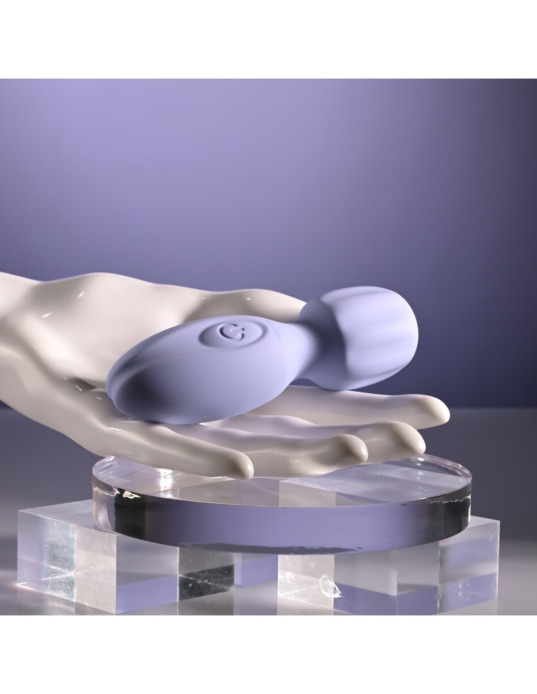 Mantén el placer en la palma de tu mano con este pequeño y flexible vibrador de varita texturizada en la cabeza y completamente cubierto de silicona para sumergirte bajo el agua.