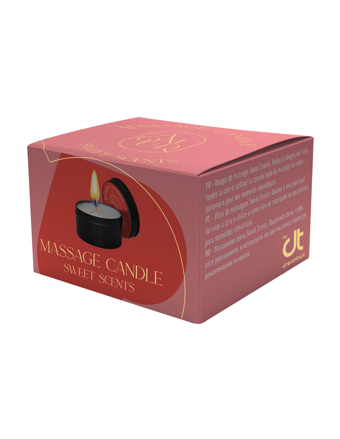 Vela de masaje Sweet Scents con una fragancia dulce. Enciende la vela para que la cera se derrita y úsala como aceite de masaje en tu pareja para momentos románticos.