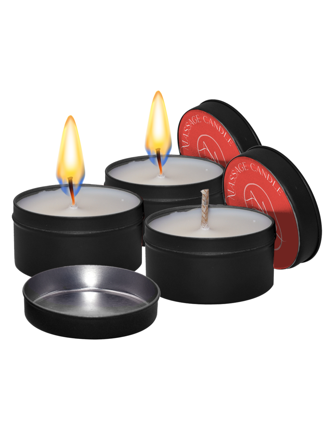 Set de 3 velas de masaje con fragancias dulces, especiadas y sensuales. Enciende una vela para que la cera se derrita y úsala como aceite de masaje en tu pareja para momentos románticos.