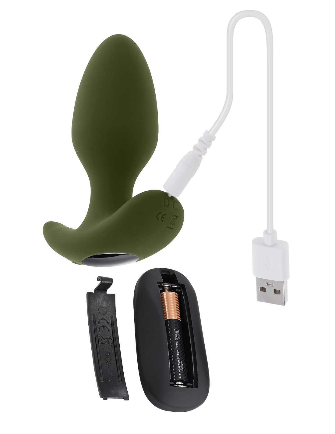 Este tapón vibratorio grueso tiene una forma bulbosa amigable y una punta redonda cónica para una entrada suave. Su potente motor funciona por control remoto o con un simple botón en la amplia base de seguridad.