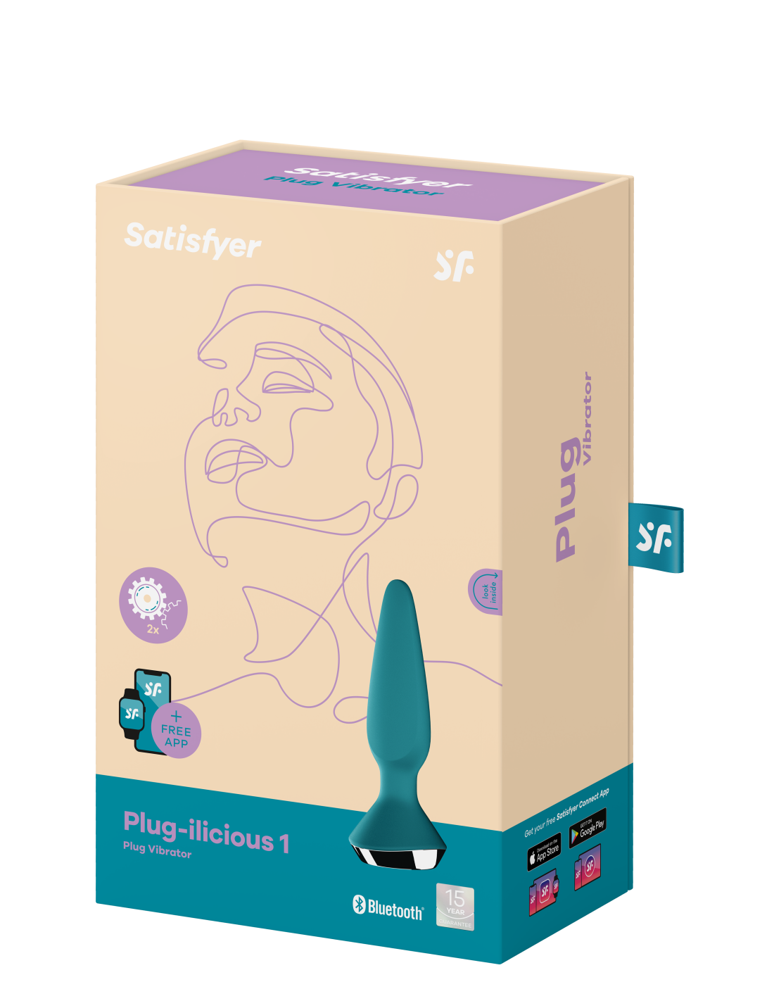 El Plug-ilicious 1 es ligeramente más pequeño y delgado que el Plug-ilicious 2 que fue lanzado por Satisfyer al mismo tiempo, lo que permite sensaciones profundas. Tiene una forma cónica con una punta puntiaguda y un lado es aplanado, lo que permite una gran estimulación general.