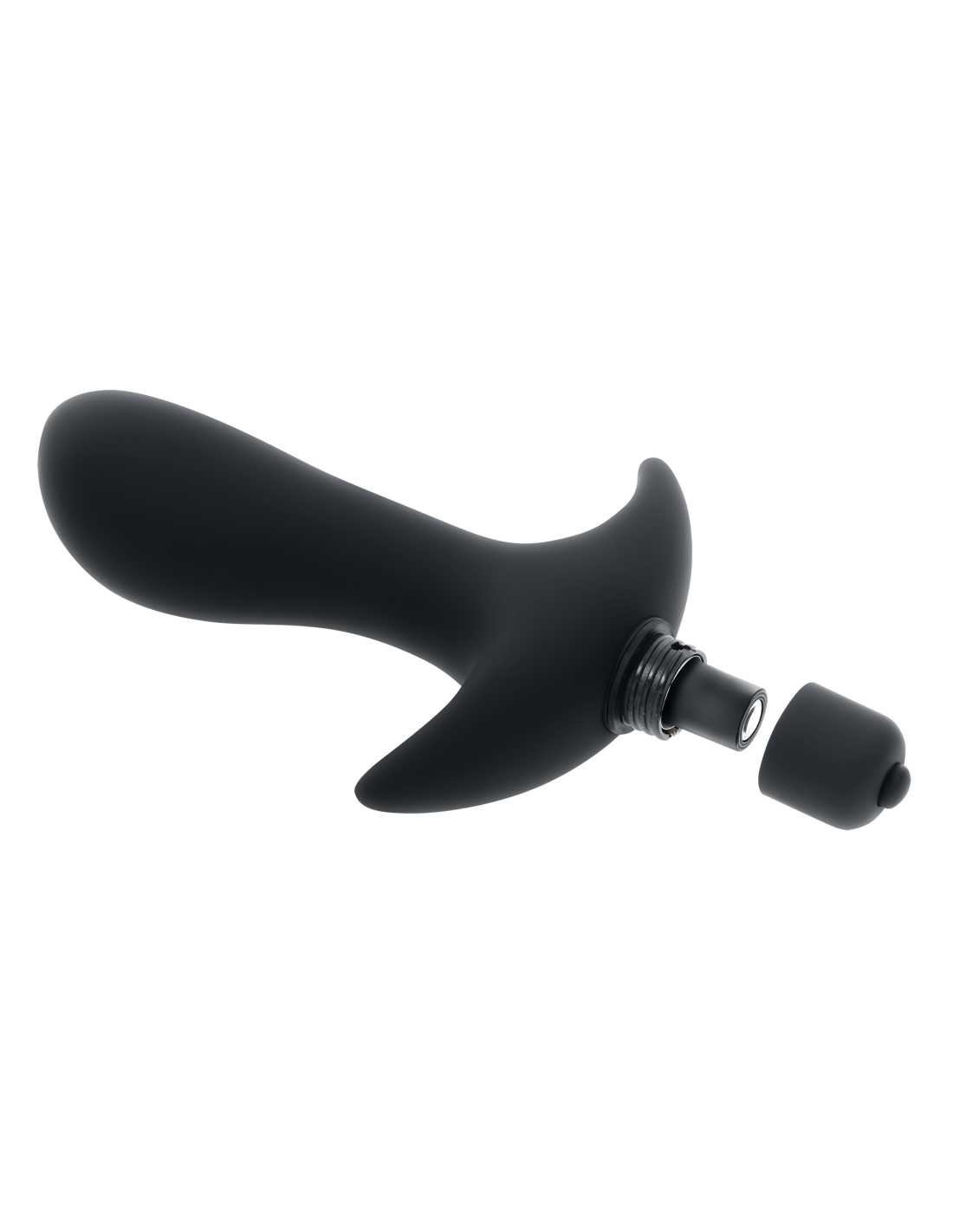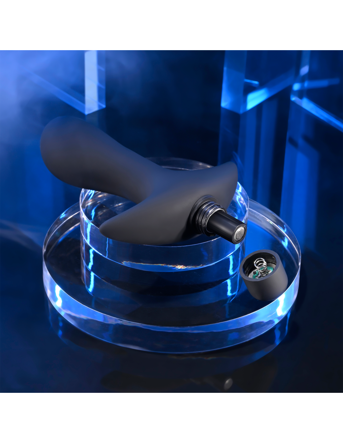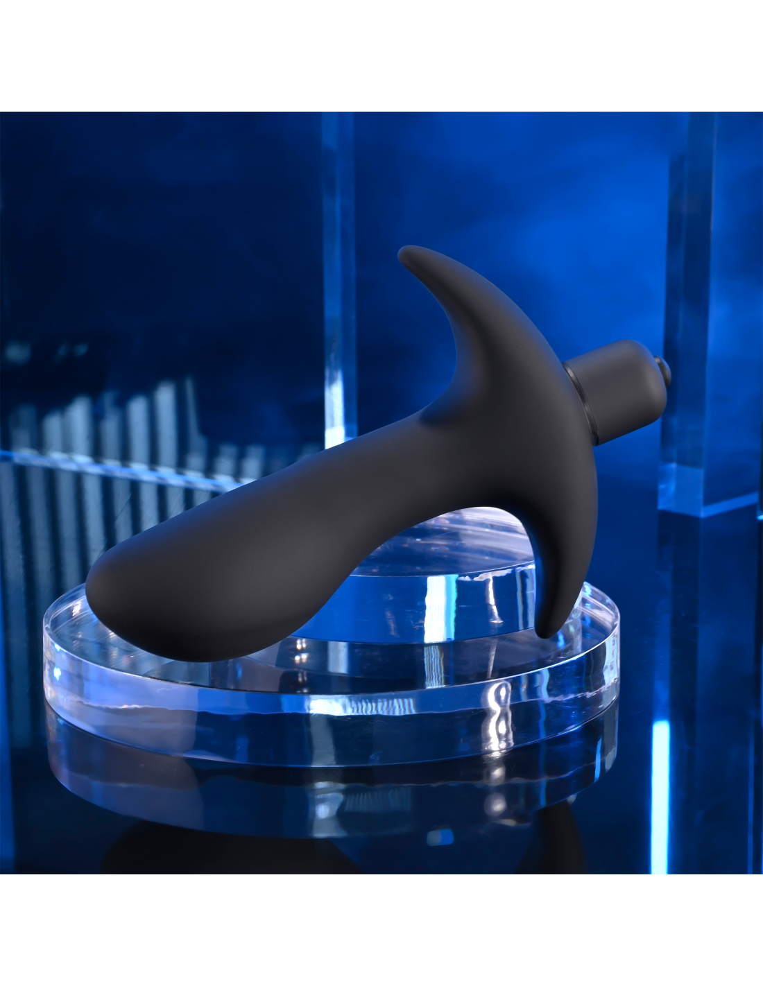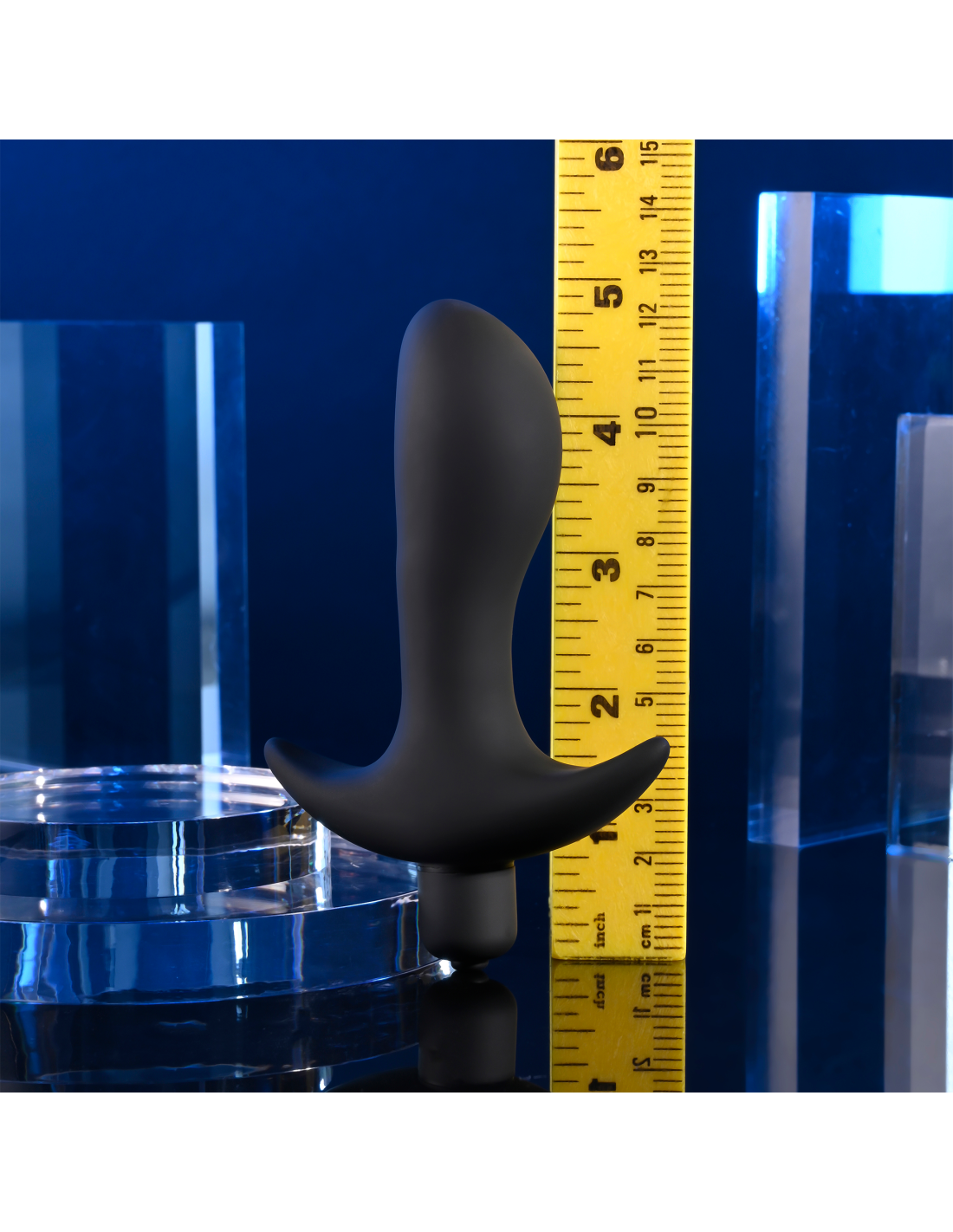 Con una punta asimétrica en forma de pulgar y una base de seguridad acampanada, este tapón de silicona vibratorio está bellamente diseñado para la estimulación interna de la zona erógena.