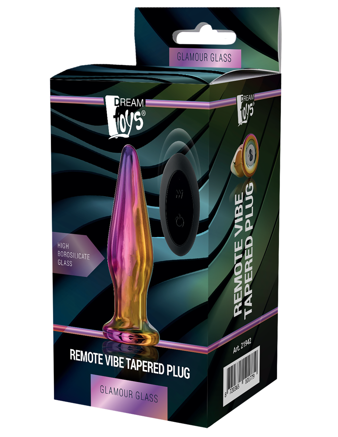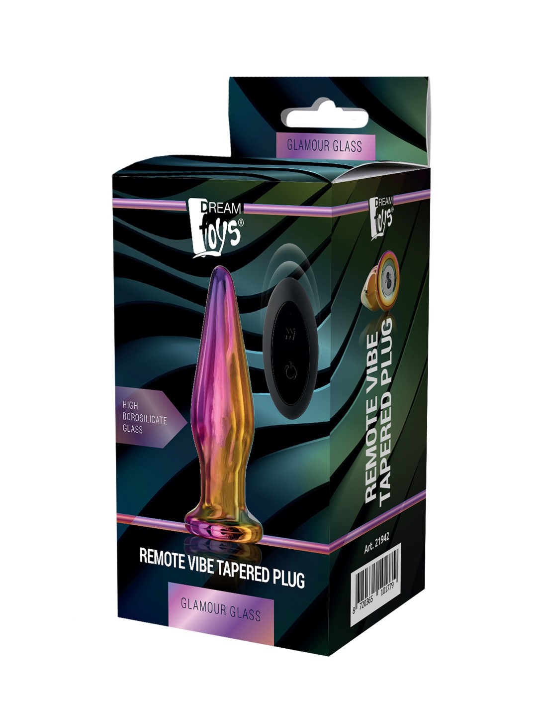 Este plug anal Glamour Glass está hecho de vidrio de borosilicato que es muy fuerte, no poroso y seguro para el cuerpo. El plug tiene una forma cónica suave para una fácil inserción y una base ancha. Viene con 10 funciones de vibración que se pueden operar fácilmente con el control remoto inalámbrico.