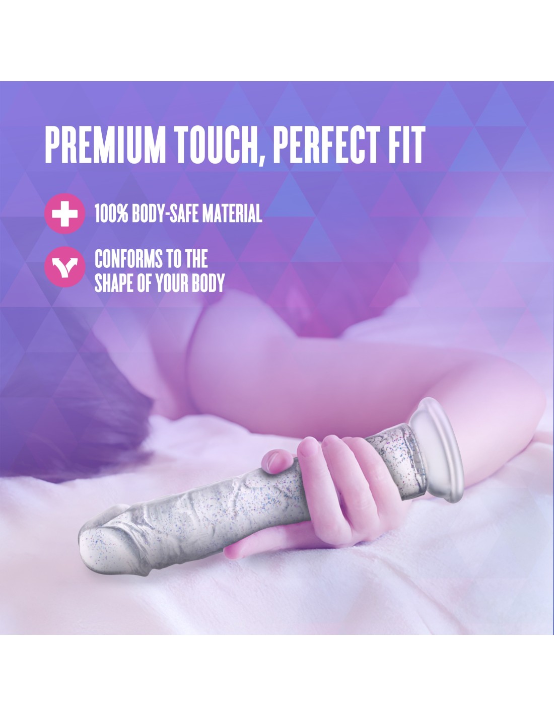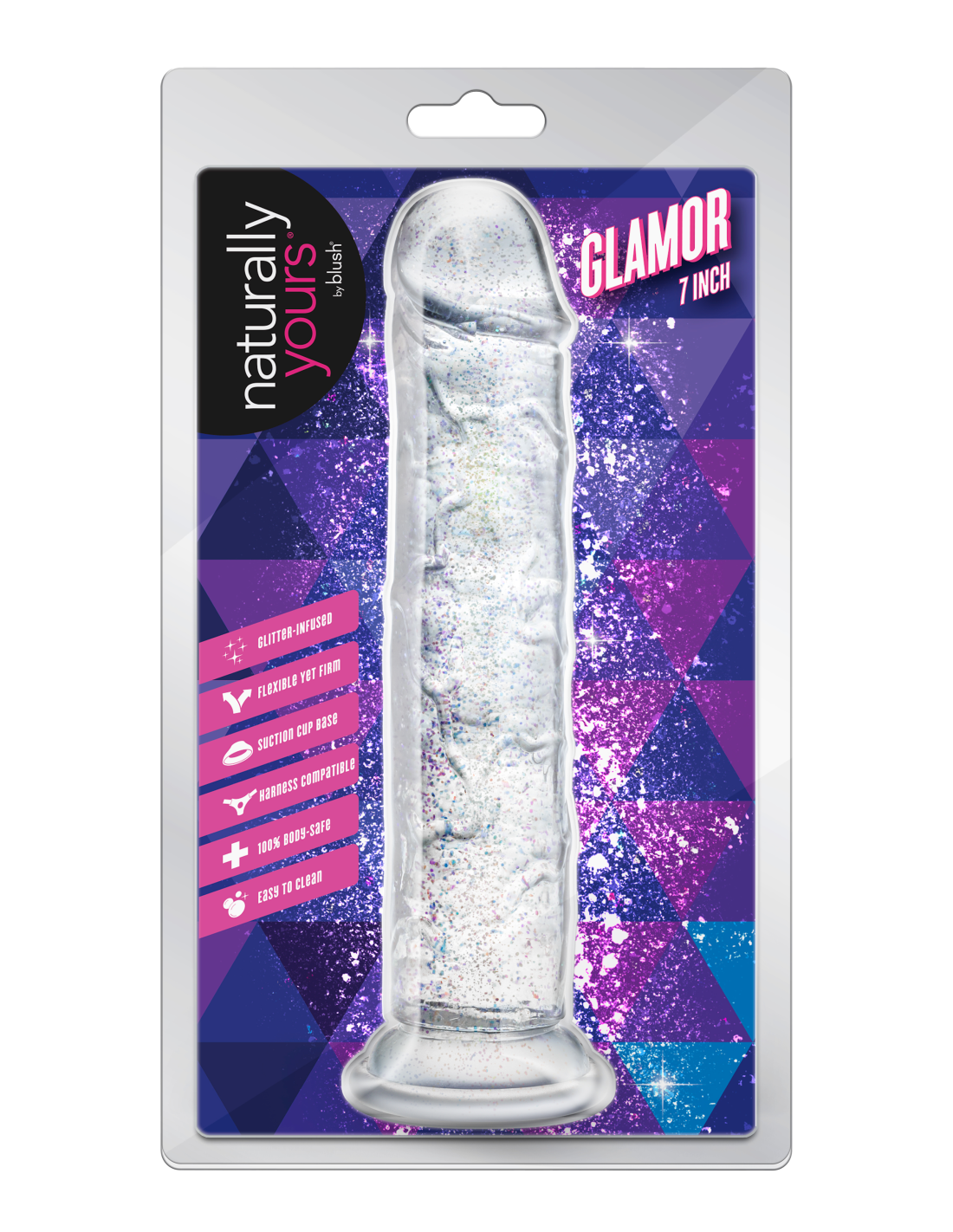 Step into the spotlight with Glamor, the glittering star of your pleasure collection. With its radiant color and subtle sparkle, Glamor adds a touch of glam to every intimate moment. Perfect for those who like their toys with a little extra flair. At 7 inches, it’s a versatile size that’s ideal for both solo exploration and partnered play. Designed to be flexible yet satisfyingly firm, Glamor adapts to your movements while offering a fulfilling experience. The strong suction cup base secures easily to smooth surfaces for hands-free fun and is fully harness compatible, giving you endless options for playful discovery. With its 100% body-safe design, Glamor is easy to clean and always ready for an encore. Whether you're indulging in a solo performance or sharing the stage with a partner, Glamor ensures every scene ends with a standing ovation.