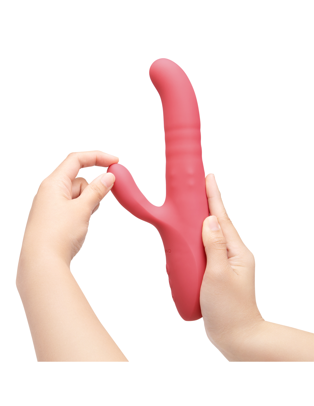 With a smooth, body-safe shaft that thrusts in precise, rhythmic strokes, the Thrust mimics the motion of a partner, creating a full, satisfying sensation. The addition of intense external vibrations ensures blended pleasure for those who love simultaneous internal and external stimulation.