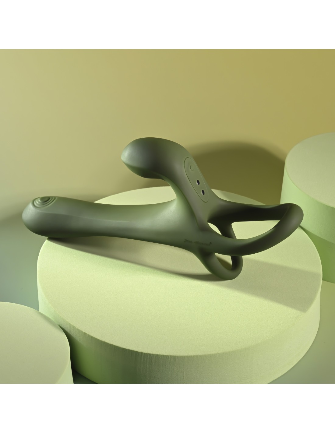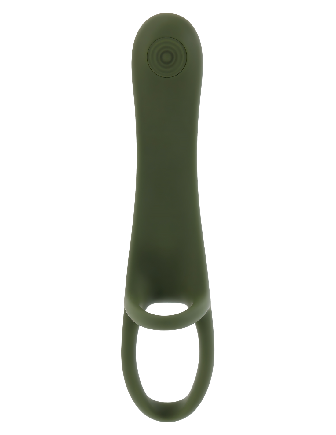Strap on this unique wearable dual vibrator to increase girth and excite your partner with double-sided tapping in the head of the shaft and vibration in the smaller stimulator, designed for maximum contact. Comfortable and completely water submersible, this flexible extender features two stretchy ball rings to lock it in place and a long-range remote control for the ultimate hands-free experience.