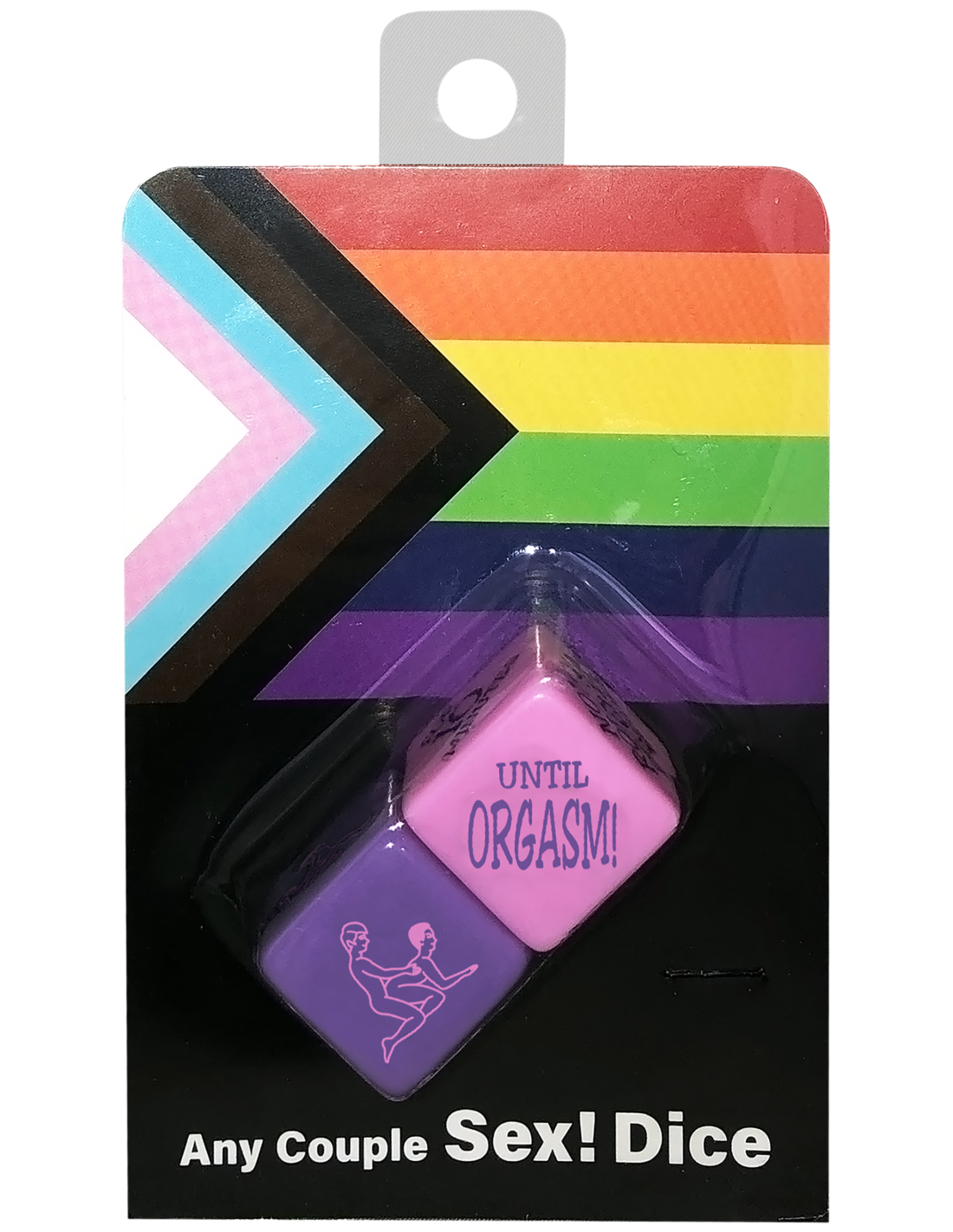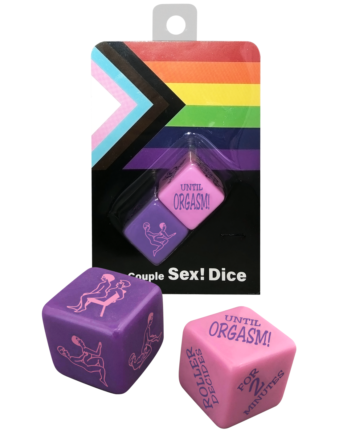 El juego Sex Dice que funciona para cualquier pareja. El dado morado te indica qué hacer y el dado rosa determina cuánto tiempo debes realizarlo. El rodillo decide quién asume cada posición y si incluye o no algún juguete.