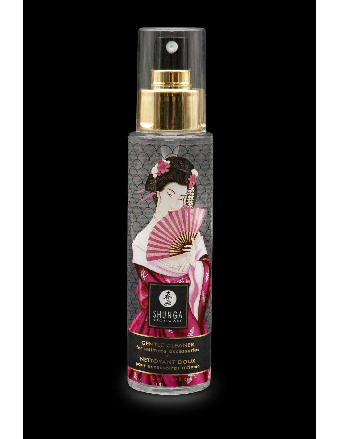 El Limpiador Suave de Shunga completa la línea de Masajeadores Íntimos de Shunga. Este spray limpiador es el mejor aliado para proteger el aspecto y la vida de tus accesorios íntimos favoritos. Fue diseñado para limpiar y eliminar eficazmente lubricantes y otras impurezas, sin dejar ningún residuo. Su fórmula suave es segura de usar en todos los materiales y la piel de los juguetes.