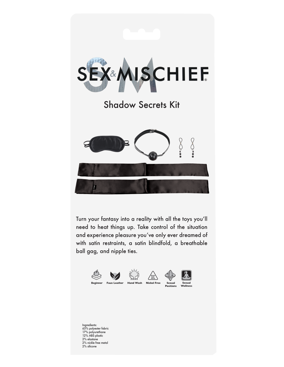 Convierte tu fantasía en realidad con todos los juguetes que necesitarás para calentar las cosas. Tome el control de la situación y experimente el placer que sólo había soñado con ataduras de satén, una venda de satén para los ojos, una mordaza de bola transpirable y ataduras para pezones.