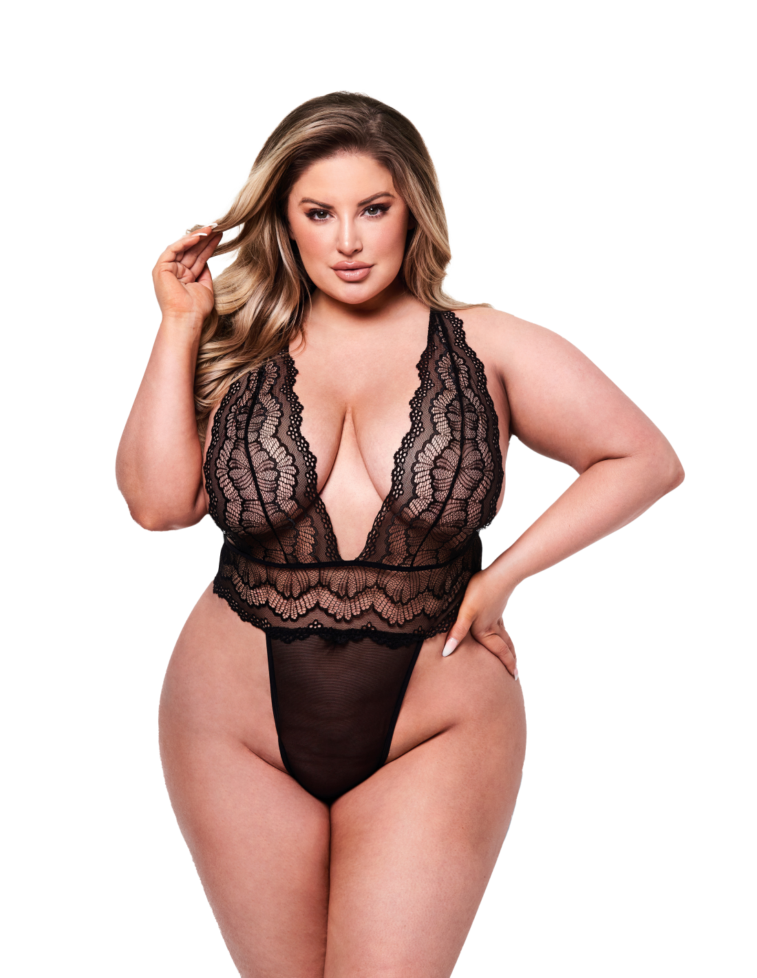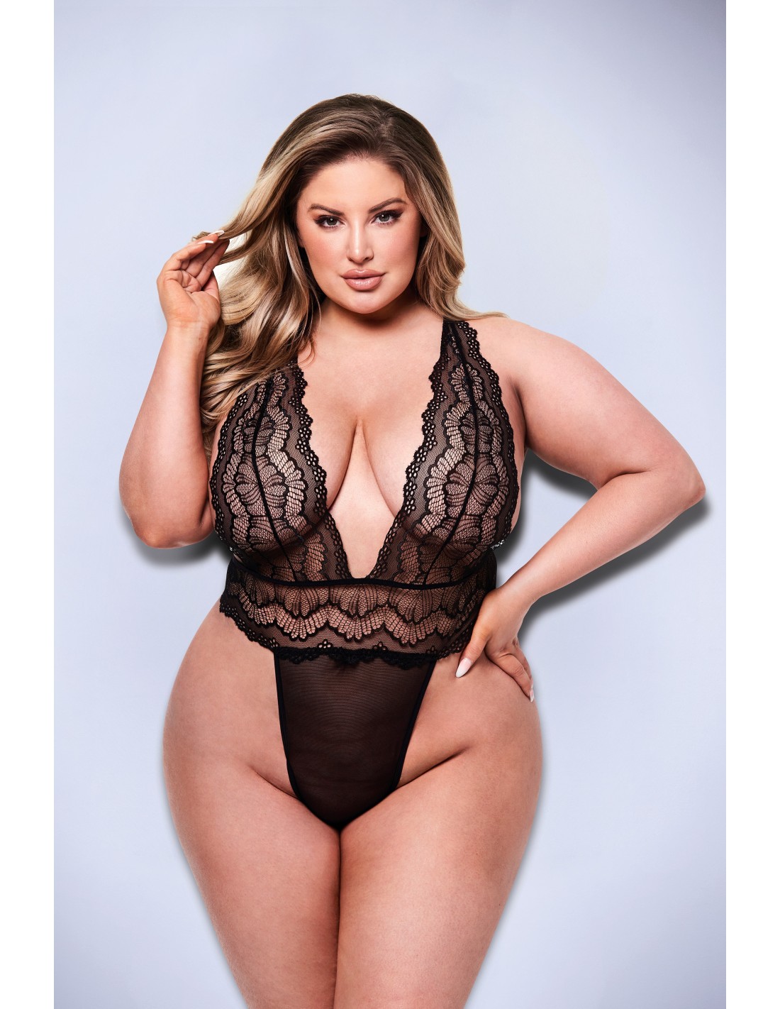 BACI SEXY PELUCHE DE ENCAJE EN V PROFUNDO NEGRO, QUEEN