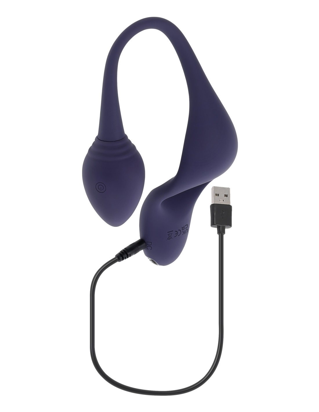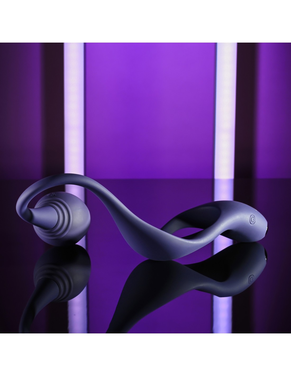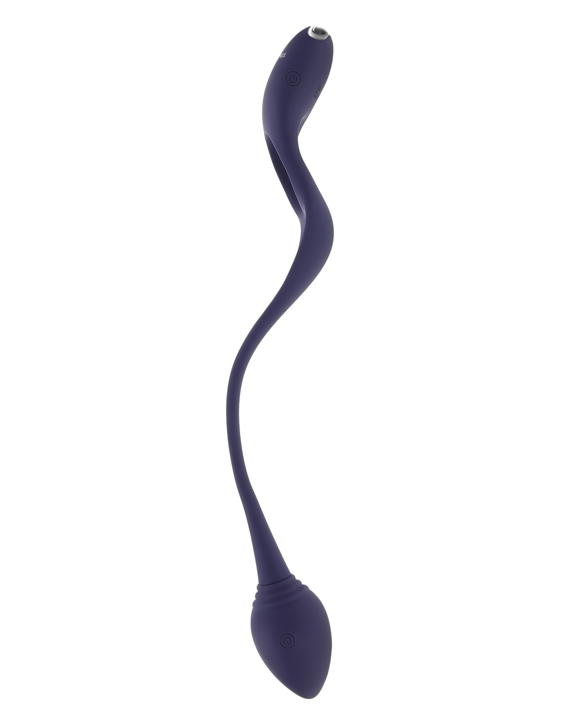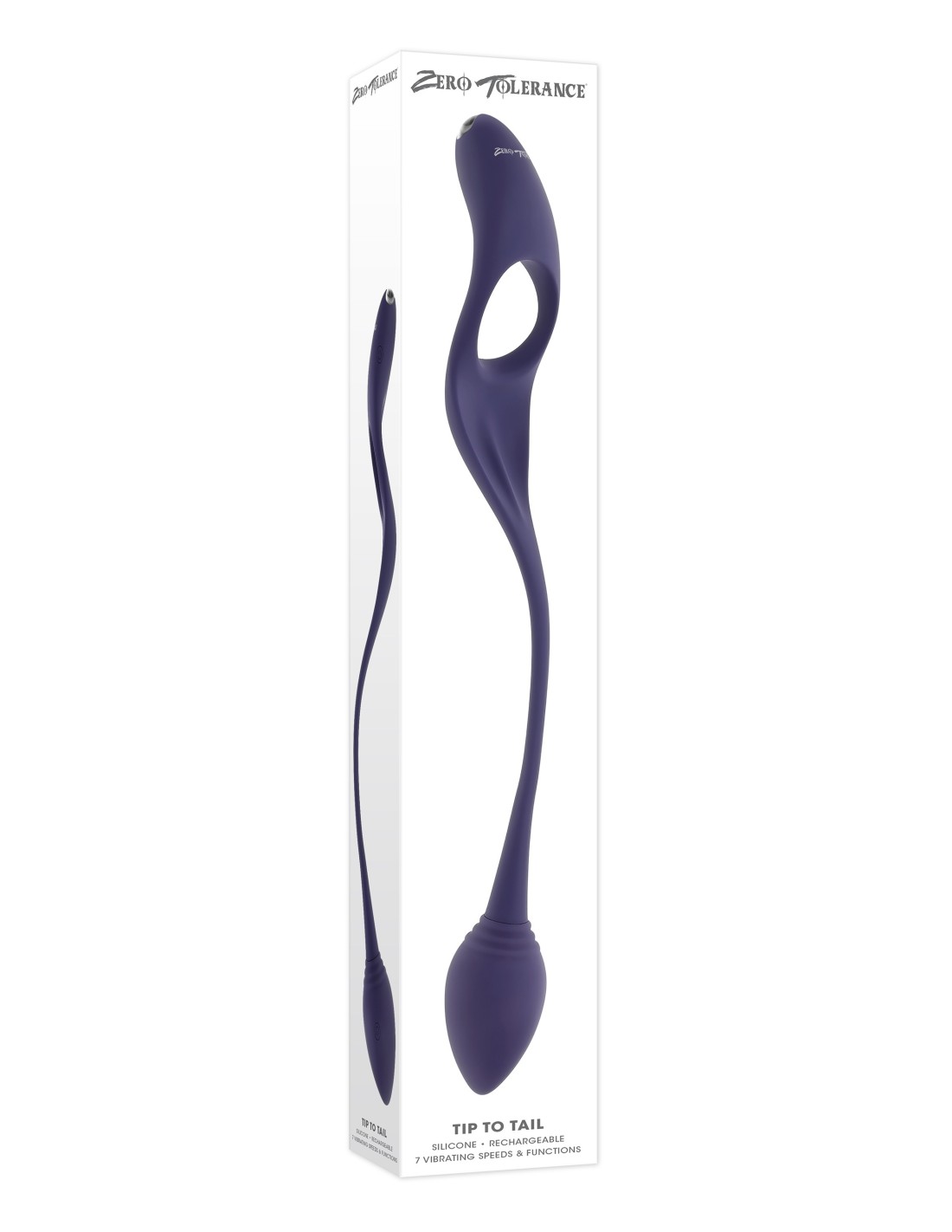 Experience pleasure from tip to tail with this innovative toy that features a vibrating plug on one end and a vibrating penis ring on the other, with a long, flexible tail in between that offers up multiple possibilities, solo or not.