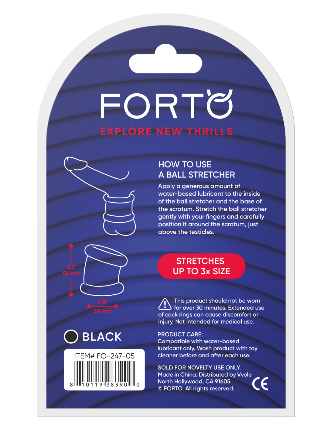 The Forto Tubular Ball Stretcher features a snug, curved inner chamber that gently pushes the balls downward for a satisfying, stretched feel. Made from ultra-soft, stretchy silicone, it provides a firm yet cushioned grip that enhances sensation and endurance. Designed for those seeking intense play and elevate their pleasure, it is made for customers looking to elevate their pleasure and control.