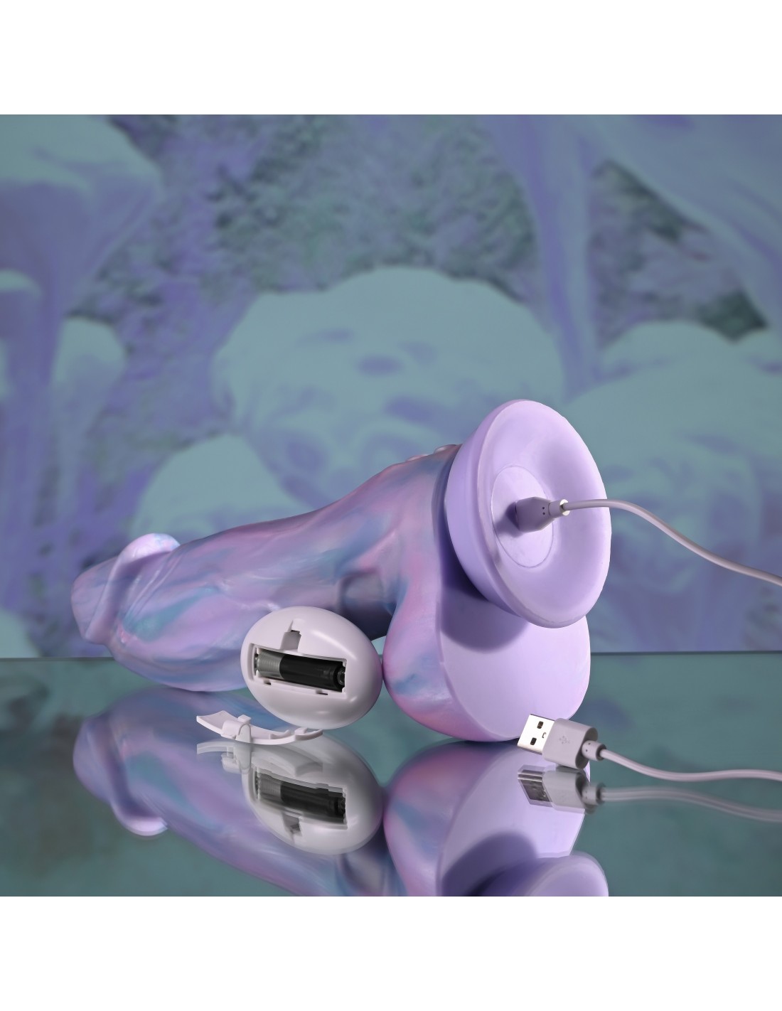 Encounter out of this world girth and power with this large, flexible vibrator that swells to a deeply satisfying thickness. Crafted with multicolor body-safe silicone, this fantasy-inspired vibrator has a realistic crowned tip, chunky balls and a robust suction cup base for stable hands-free pleasure. Try Turbo Mode to instantly reach max intensity when you crave it most.