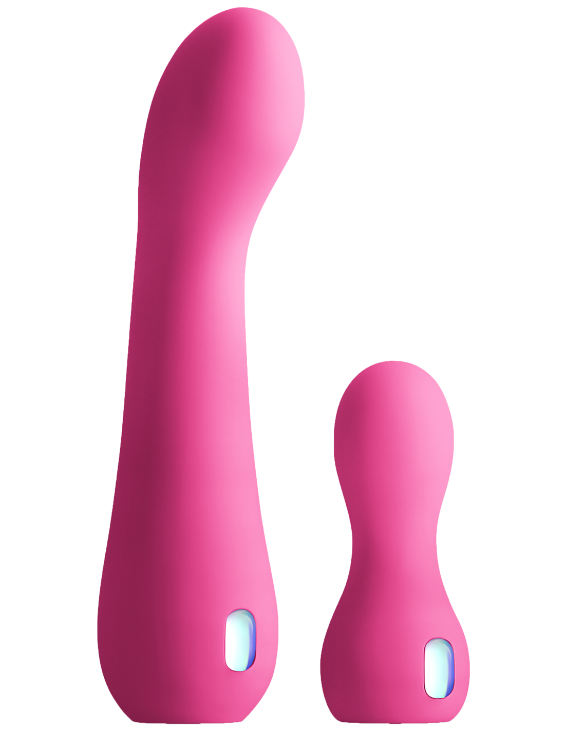 Couplet by INYA is a match made in heaven. Including a powerful 3-inch vibrating bullet and a 6-inch curved vibrator for unmatched G-Spot stimulation. Couplet vibes are made from body-safe silicone and are accented with iridescent gems.