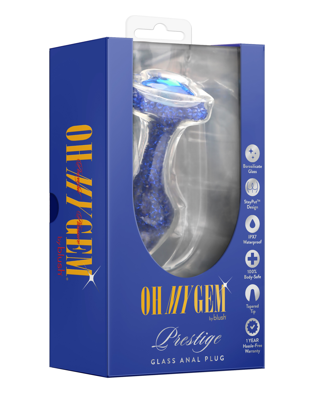Radiate elegance with Oh My Gem Prestige, a luxurious anal plug inspired by the timeless beauty of the sapphire gemstone. Crafted from premium borosilicate glass, Prestige’s smooth, tapered tip allows for effortless insertion, blending comfort with indulgent stimulation. Designed to captivate, its dazzling sapphire-adorned heart-shaped base adds a touch of glamour to every experience. Blush’s StayPut™ design ensures secure, comfortable wear, while the sleek glass surface delivers delicious pressure and precise stimulation. Perfect for temperature play, Prestige lets you explore warm or cool sensations, heightening every intimate moment. Body-safe, easy to clean, and undeniably stunning, Prestige is a gem meant for indulgence, a radiant addition to any collection.