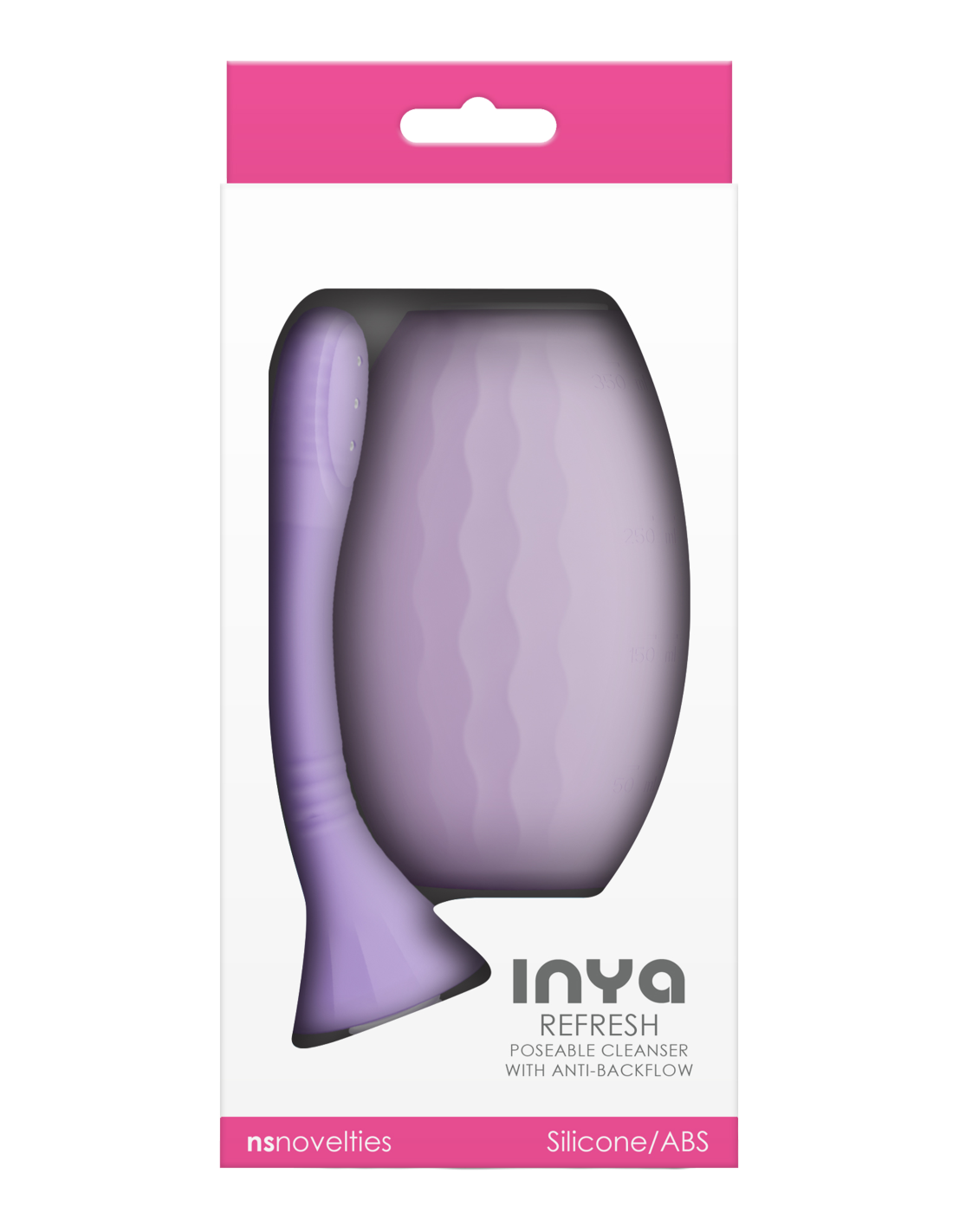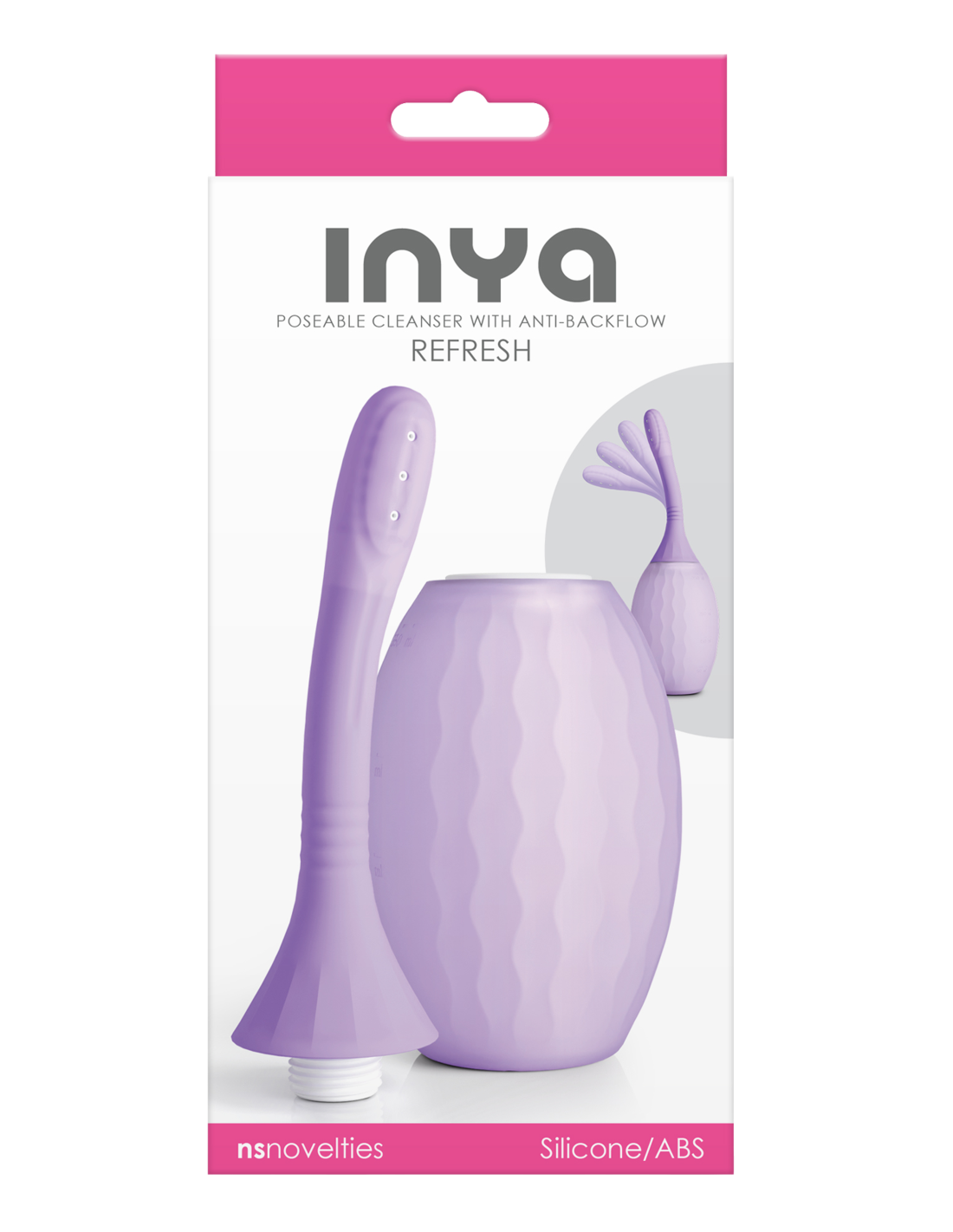 INYA Refresh is an intimate hygiene device featuring an anti-backflow design for improved cleanliness and safety. Includes a squeezable bulb and poseable nozzle made of body-safe silicone. Easy to use, easy to clean, and compatible with all lubricants.