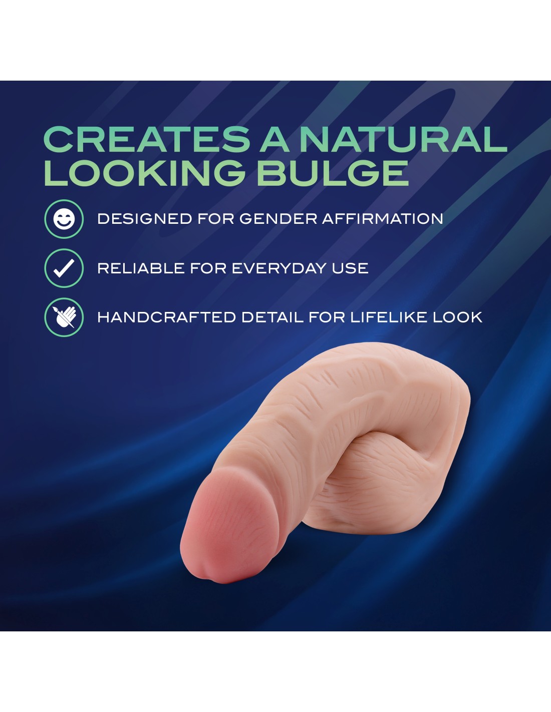 Crafted with care and intention, Affirm by URSELF™ is a silicone packer designed to move with your body and support how you express yourself. Made with Purio®, 100% body-safe platinum-cured liquid silicone, it offers a soft, realistic feel that warms naturally to your touch. Its lifelike shape and flexible form rest comfortably against the skin, creating a natural appearance that feels authentic and affirming. Lightweight, durable, and easy to wear, Affirm fits seamlessly into your daily routine. Whether tucked discreetly under clothing or worn with packing underwear, its smooth, non-porous surface keeps it hygienic and easy to clean. Thoughtfully designed for everyday comfort and confidence, Affirm is a reminder that what feels right to you is always enough.