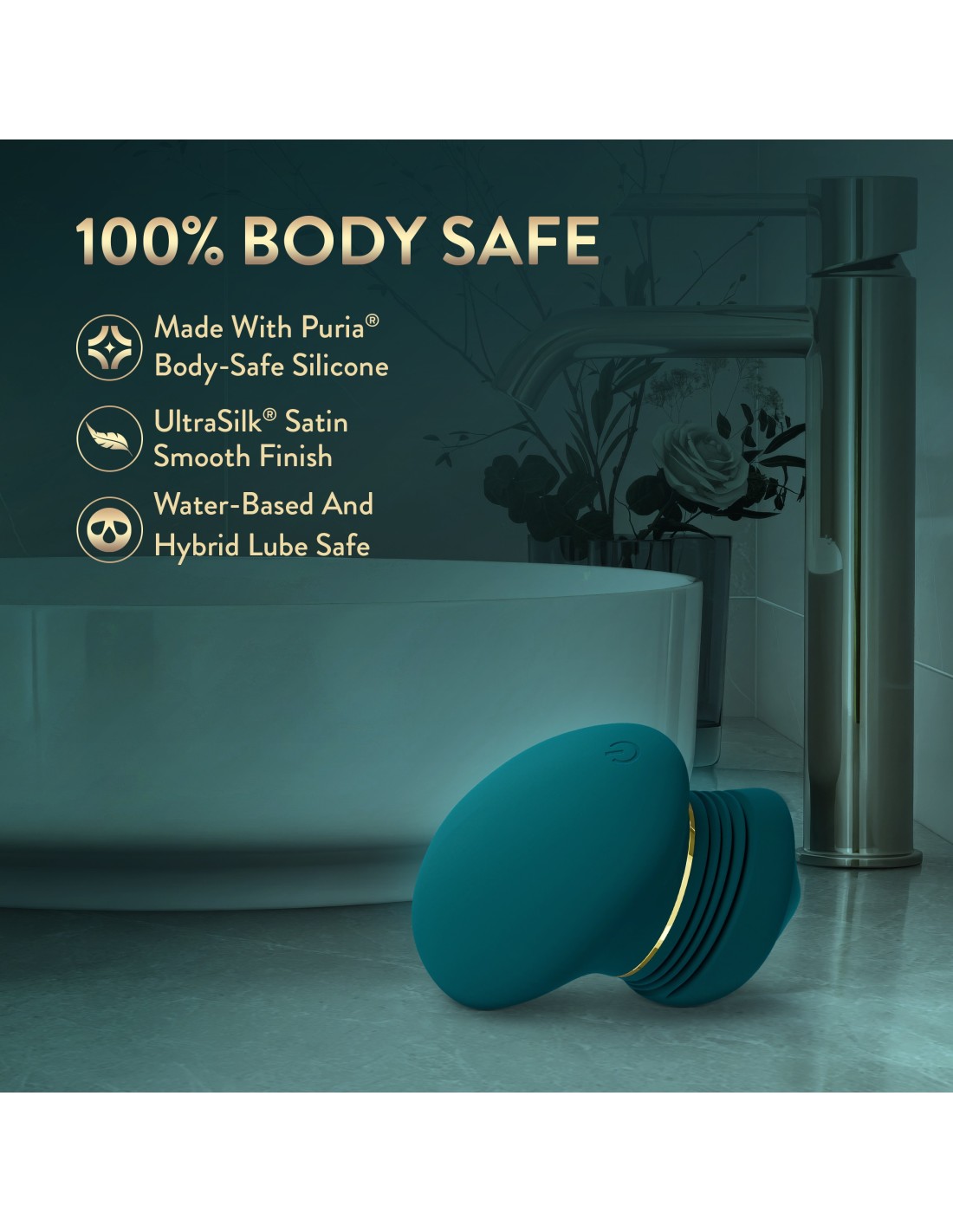 - Puria® Body-Safe Silicone, UltraSilk® Satin Smooth