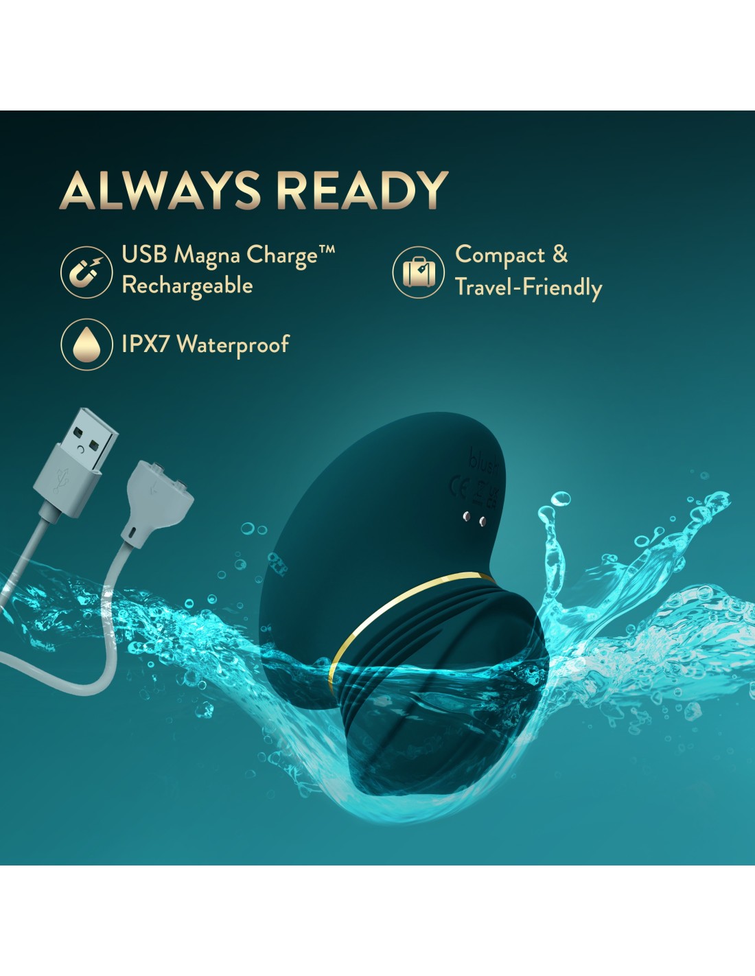 - IPX7 Waterproof & Magna Charge® USB Rechargeable
