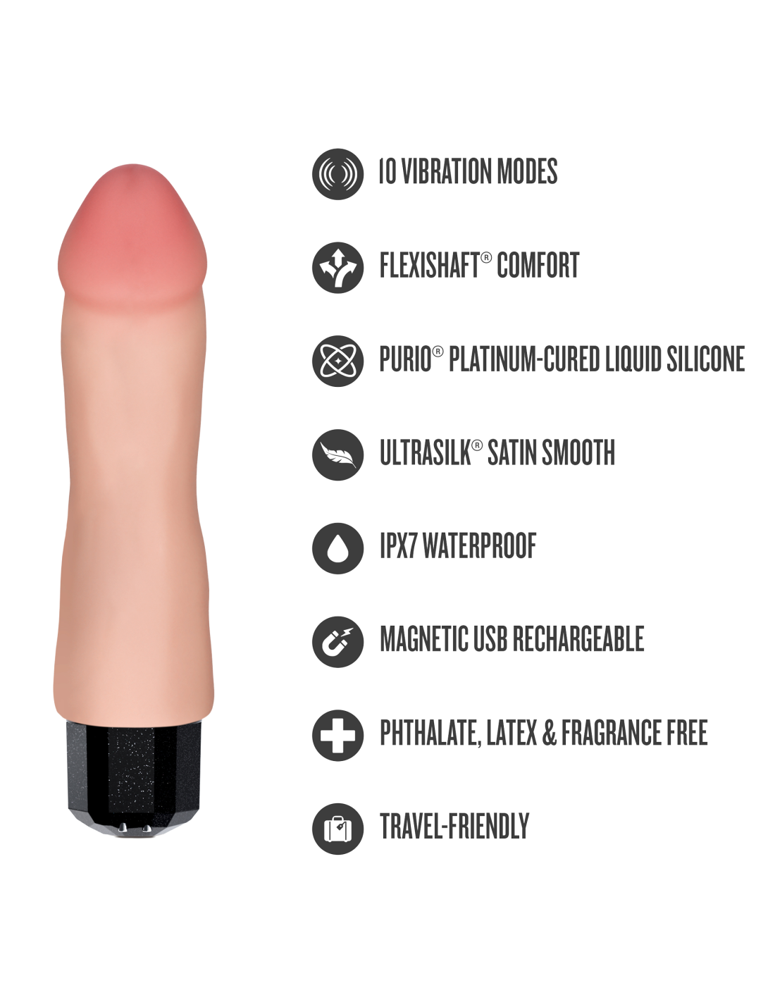 Meet Dr. Avery! This luxurious 7.5” vibrator is perfect for both solo indulgence and adventurous couples' play, offering you endless possibilities for intimate exploration. With 10 customizable vibration speeds and a flexible shaft, Dr. Avery is designed to adapt seamlessly to your every desire, delivering precise and powerful sensations exactly where you want them. Crafted from Purio®, a premium platinum-cured liquid silicone, and wrapped in our signature UltraSilk® finish, Dr. Avery glides effortlessly over your skin, making each touch smooth, inviting, and incredibly comfortable. Whether you're exploring on your own or sharing the experience with a partner, this versatile handheld companion is built to bring you the ultimate pleasure experience. Always on call and ready whenever you are, your favorite doctor ensures that every moment of your intimate journey is unforgettable. Dive into a world of deep, satisfying pleasure and let Dr. Avery make every moment unforgettable.