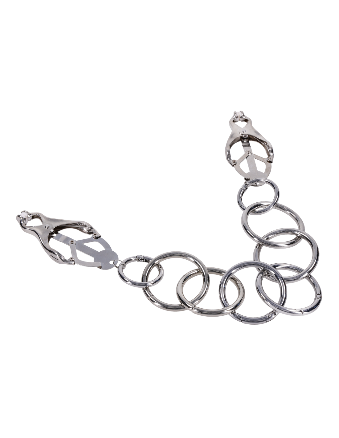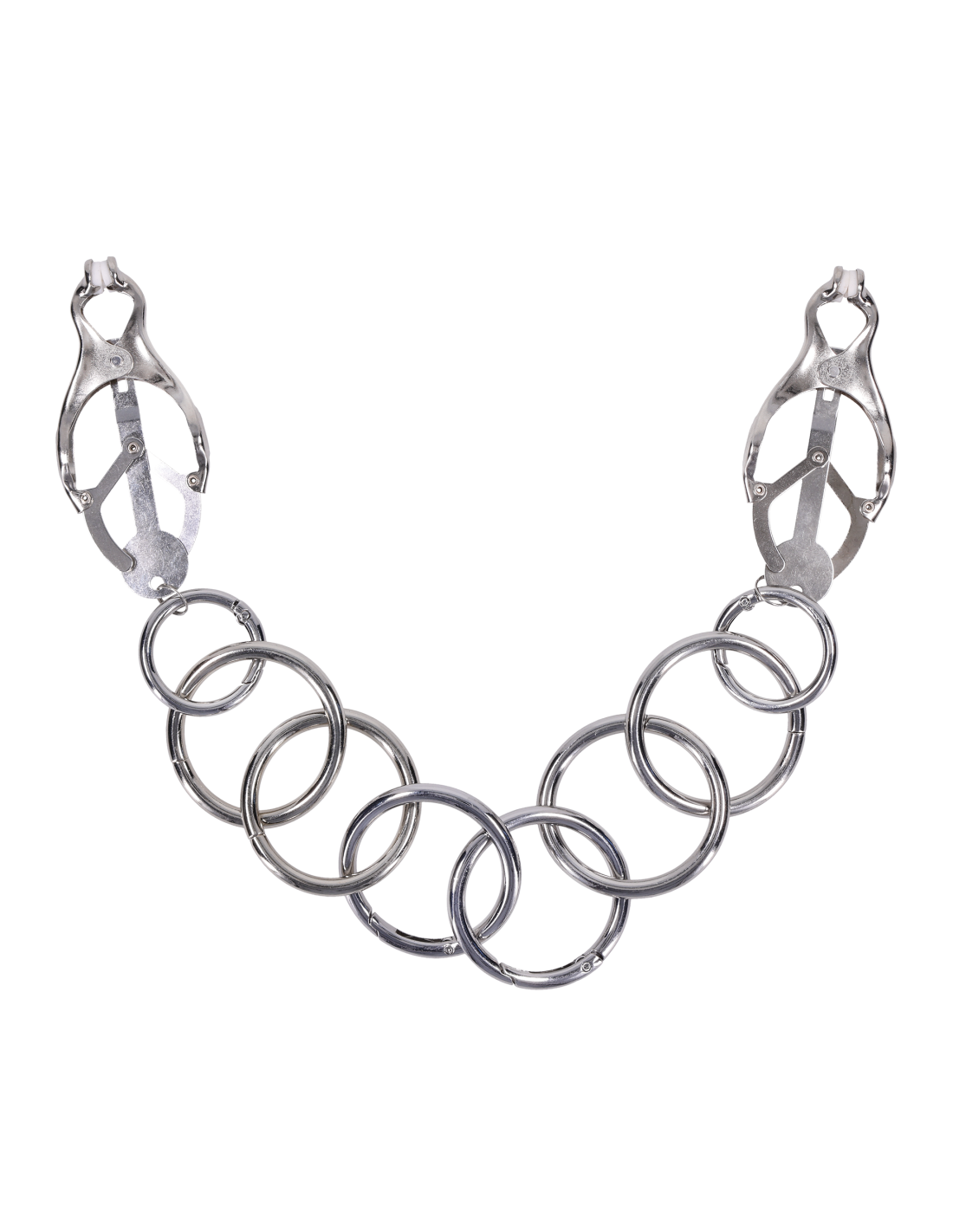 bondage play. Finished in polished silver metal with textured silicone-tipped