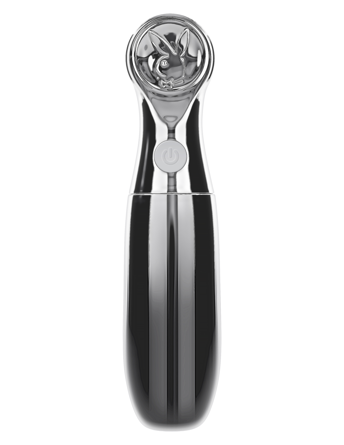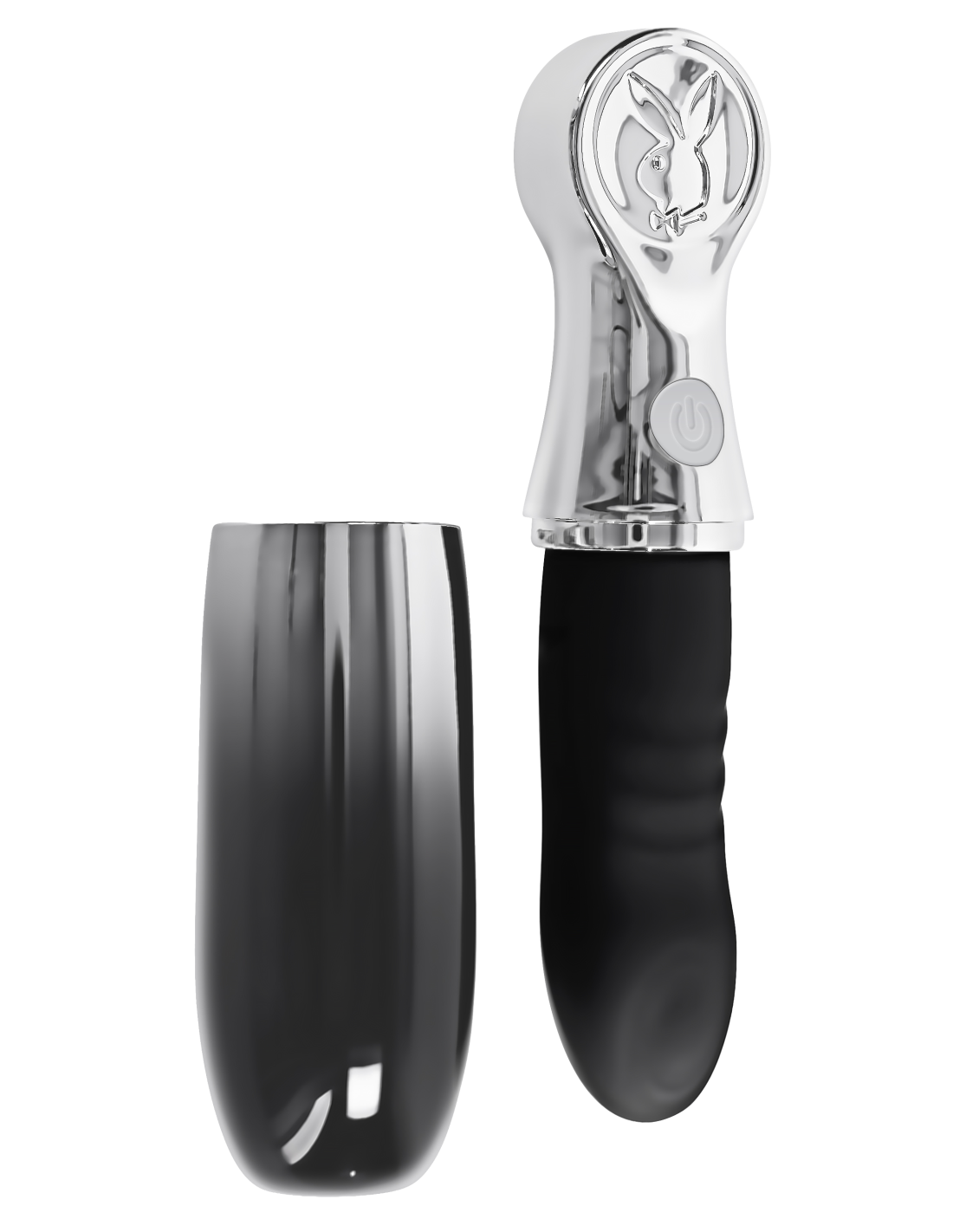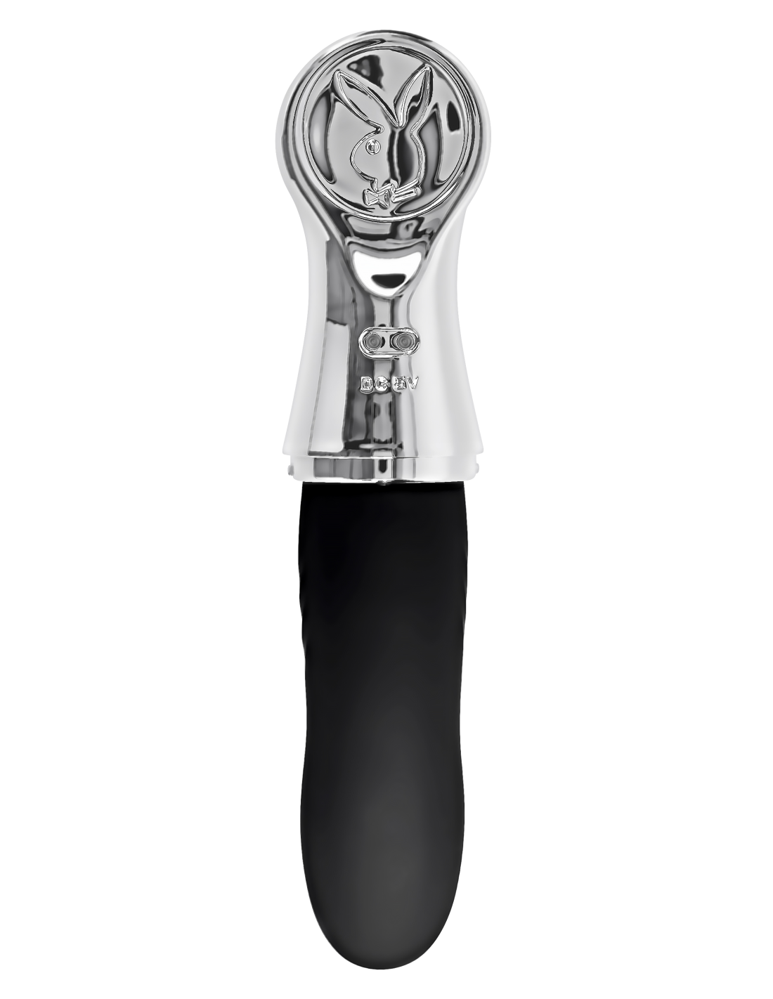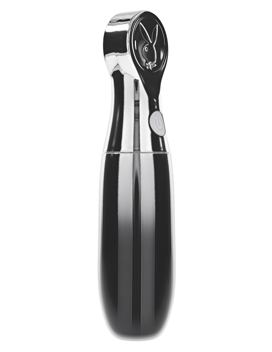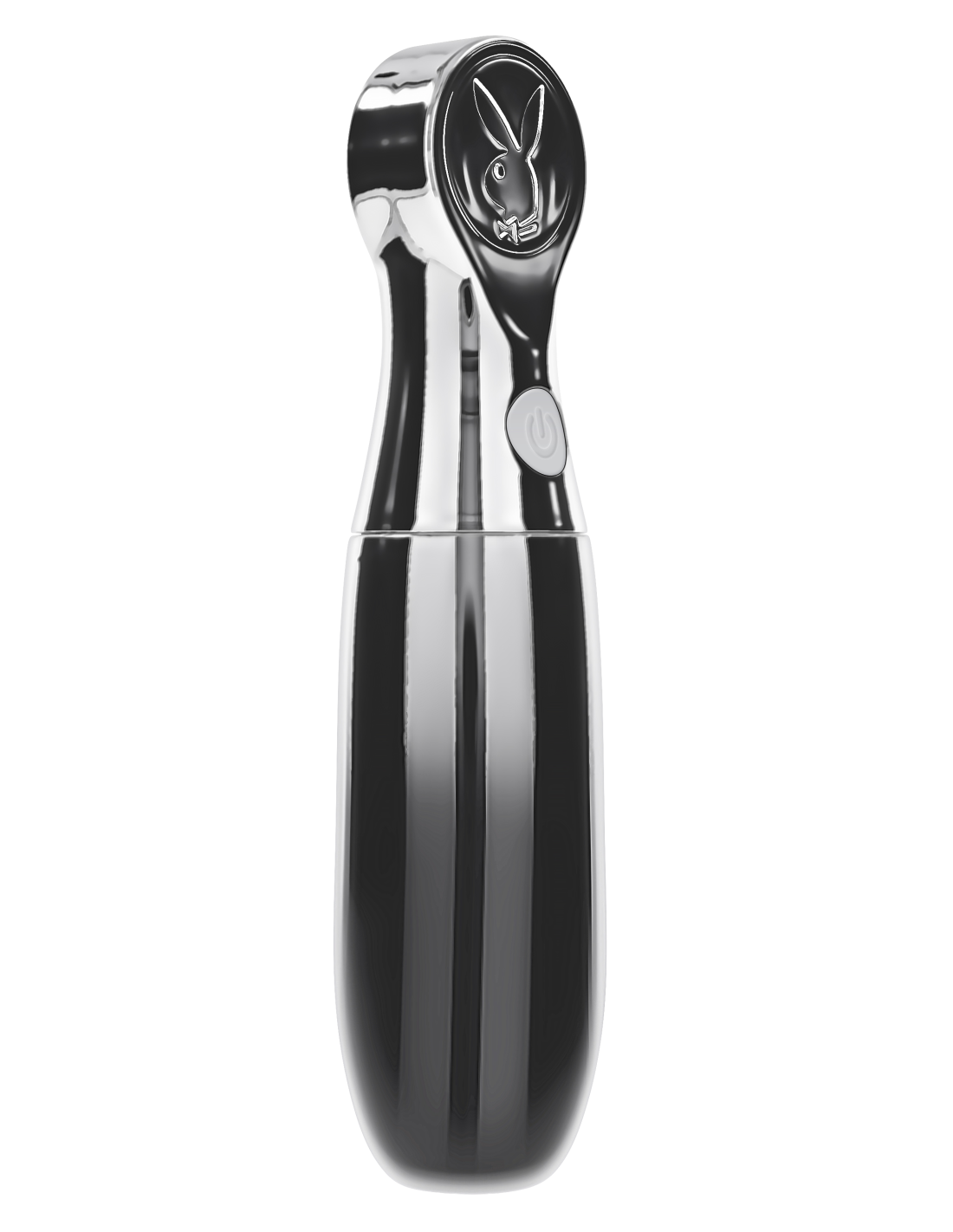 Bon Voyage! We’ve got your travel adventures covered with this powerful tapping toy you can pop into any purse, bag or carry-on luggage for pleasure on the go! The chunky shaft is ribbed for extra sensation and comes to a head with 7 speeds and rhythms of tapping in the beautifully angled tip. With its ombre chrome carrier that twists into place right underneath the ergonomic Playboy rabbit head, your toy is fully protected until you pull it out for play time whenever you like. Heading to the hot tub? Bon Voyage can join your water games as it’s completely submersible!