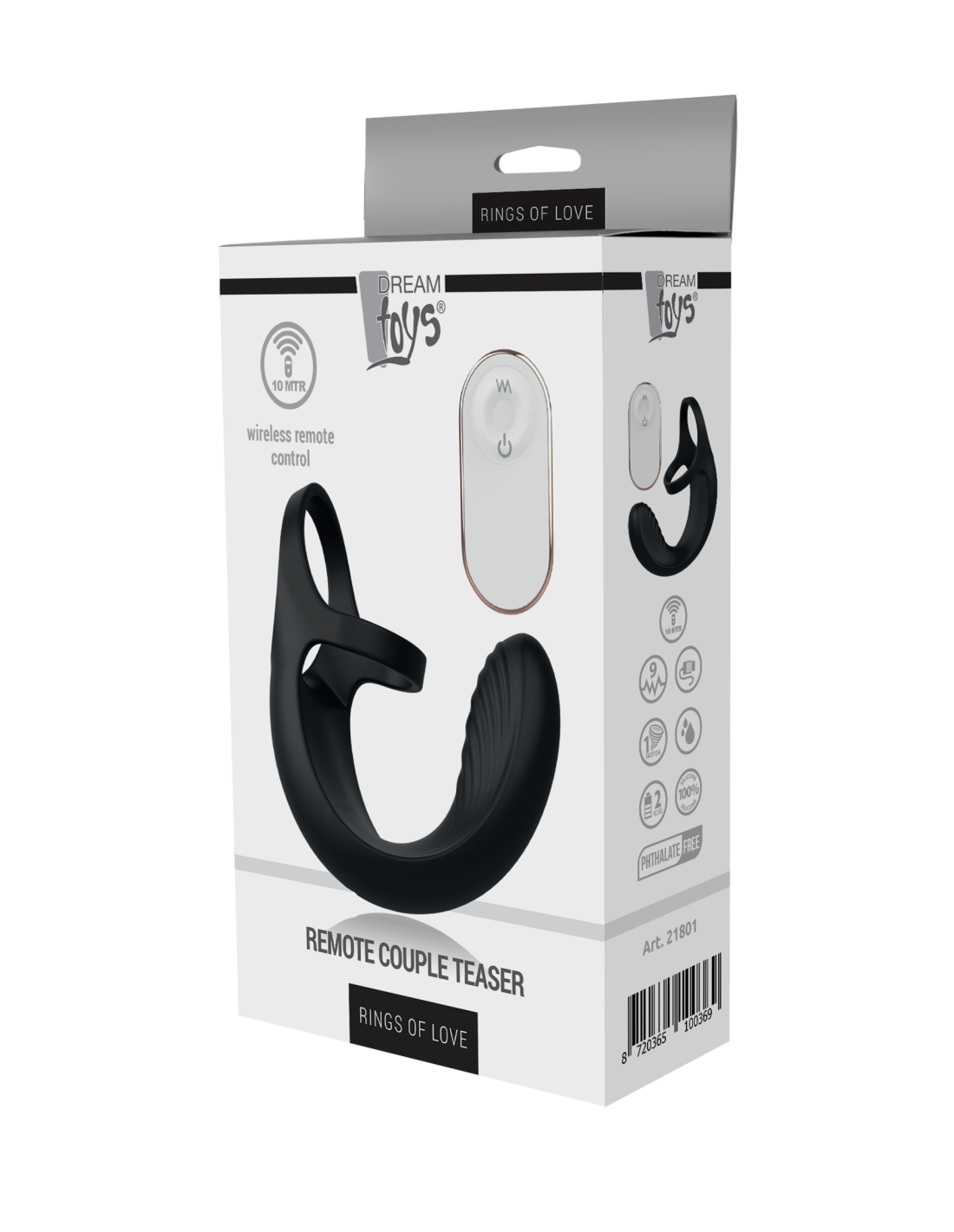 Este estimulador flexible es maravilloso para usar durante las relaciones sexuales. El estimulador rodea el pene con un anillo extensible. La parte curva pasa debajo del escroto, entre las bolas. Esta parte flexible tiene crestas y vibra contra el perineo en 9 ritmos diferentes. Es posible utilizar este estimulador en la ducha o en la bañera porque es resistente al agua. Para mayor comodidad, viene con un control remoto inalámbrico para operar las vibraciones y un cable USB magnético para recargar el estimulador. El control remoto utiliza una batería CR2032 que está incluida.